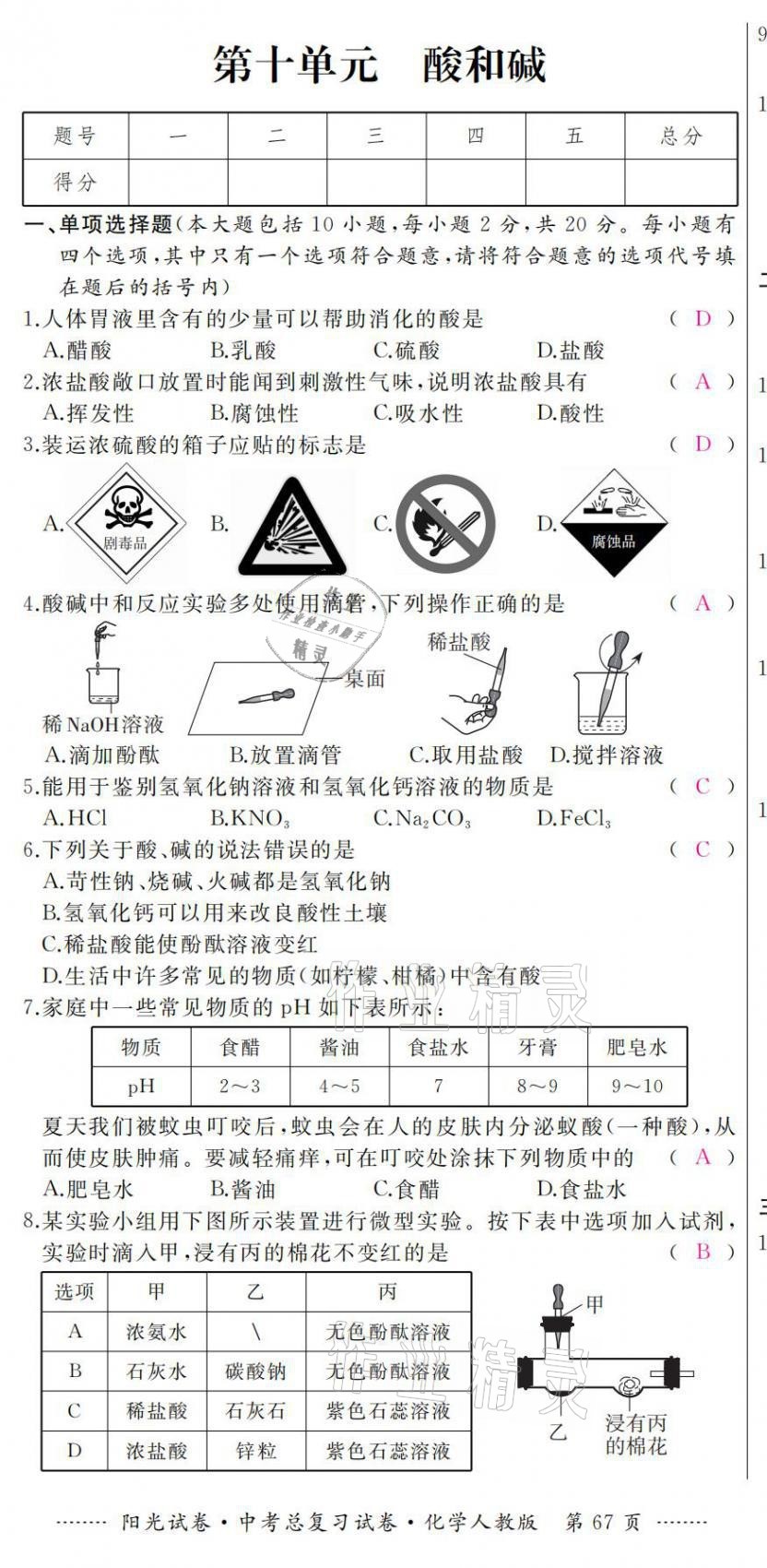 注:目前有些书本章节名称可能整理的还不是很完善,但都是按照顺序排列的,请同学们按照顺序仔细查找。练习册 2021年阳光试卷中考总复习试卷化学人教版 答案主要是用来给同学们做完题方便对答案用的,请勿直接抄袭。