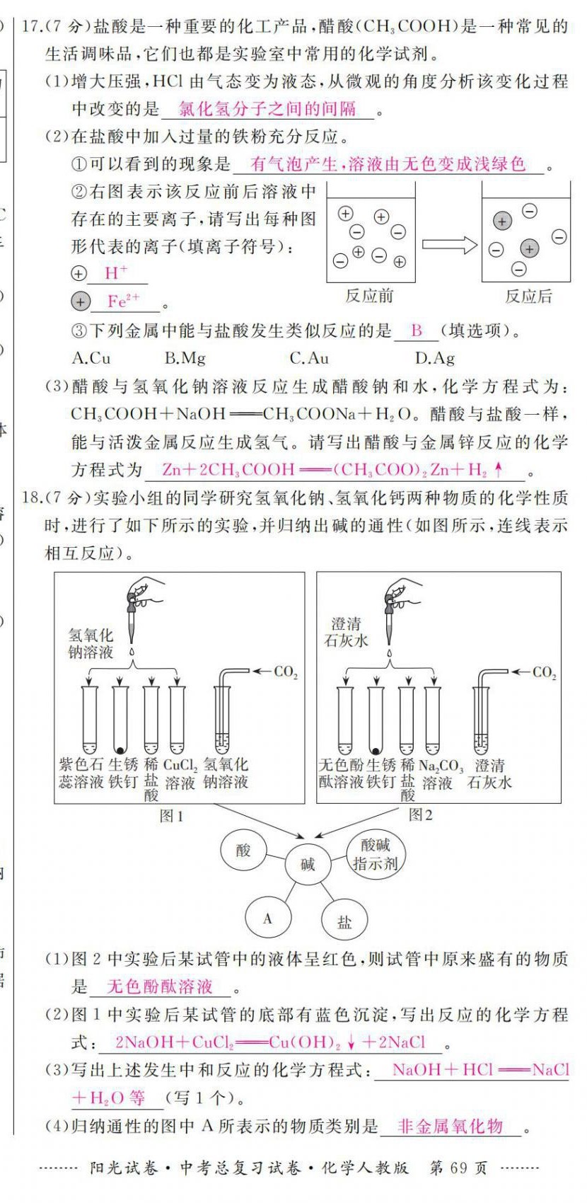 注:目前有些书本章节名称可能整理的还不是很完善,但都是按照顺序排列的,请同学们按照顺序仔细查找。练习册 2021年阳光试卷中考总复习试卷化学人教版 答案主要是用来给同学们做完题方便对答案用的,请勿直接抄袭。