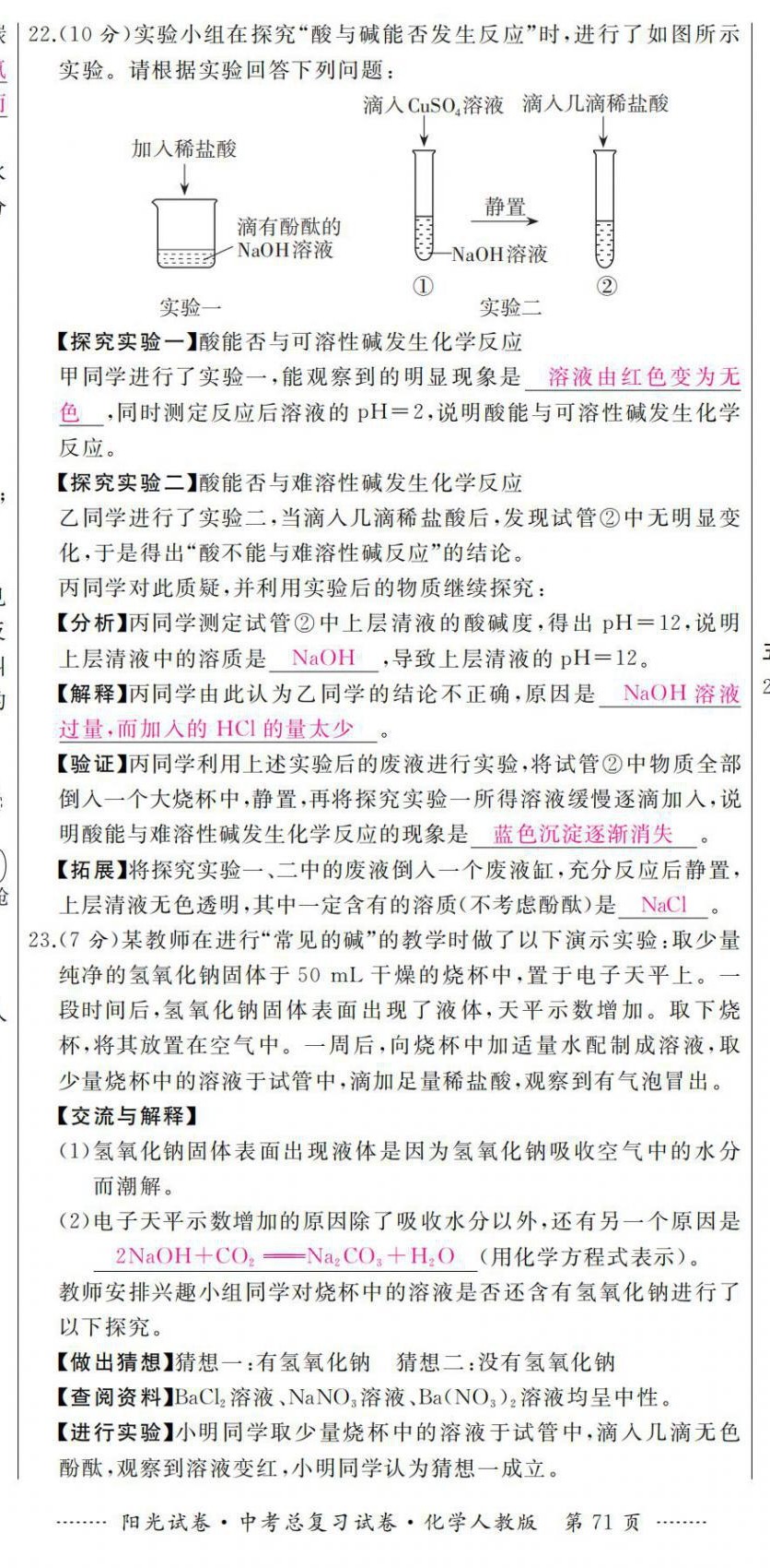 注:目前有些书本章节名称可能整理的还不是很完善,但都是按照顺序排列的,请同学们按照顺序仔细查找。练习册 2021年阳光试卷中考总复习试卷化学人教版 答案主要是用来给同学们做完题方便对答案用的,请勿直接抄袭。