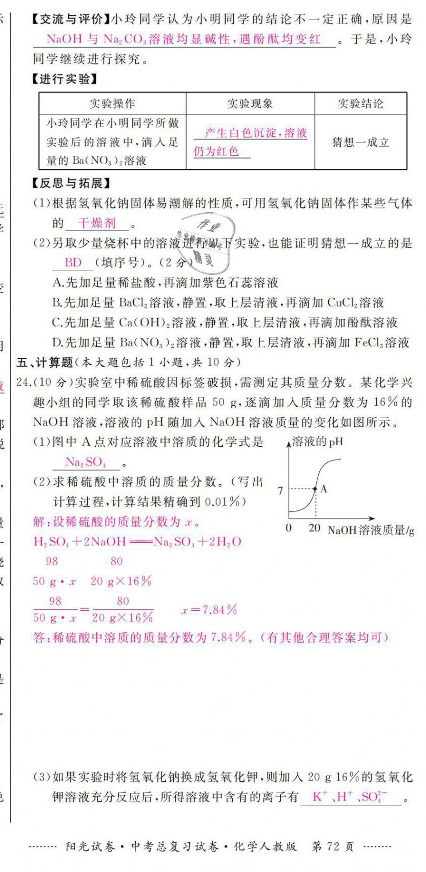 注:目前有些书本章节名称可能整理的还不是很完善,但都是按照顺序排列的,请同学们按照顺序仔细查找。练习册 2021年阳光试卷中考总复习试卷化学人教版 答案主要是用来给同学们做完题方便对答案用的,请勿直接抄袭。