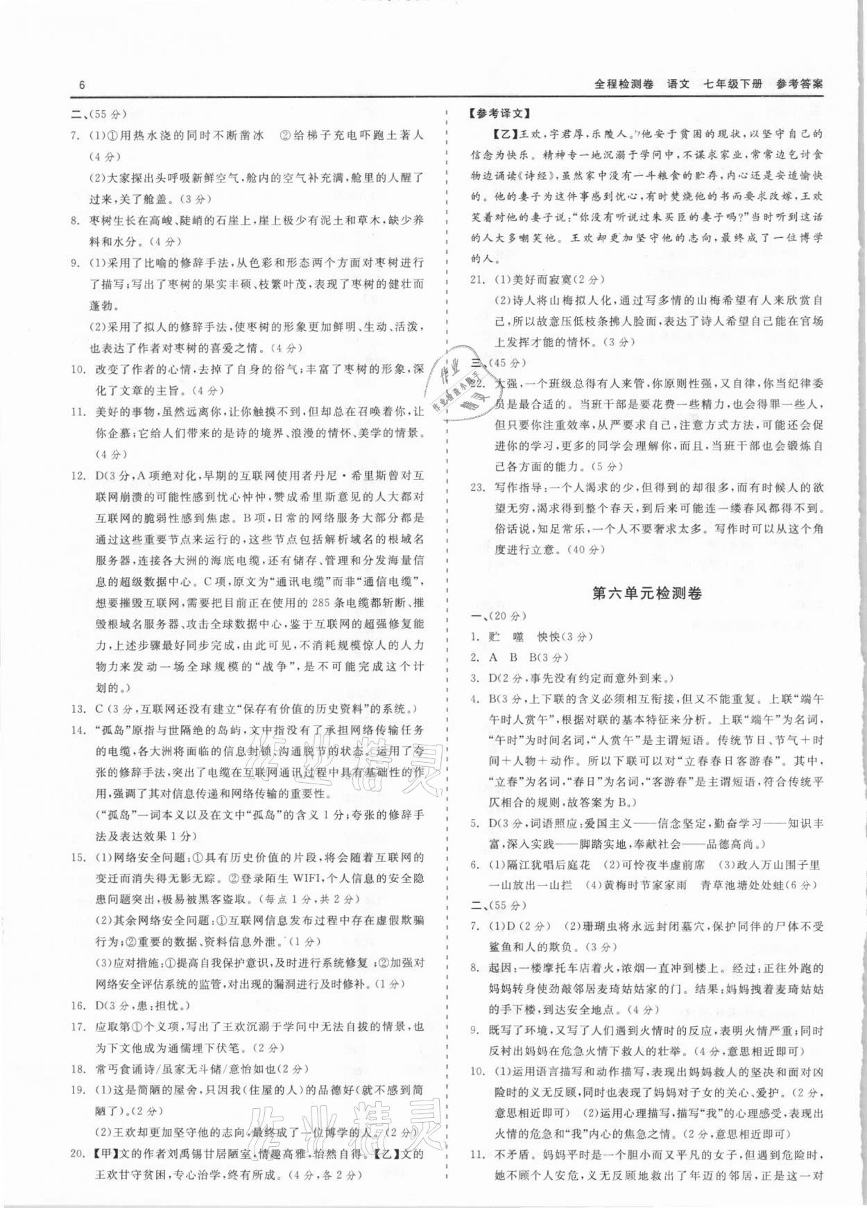 注:目前有些书本章节名称可能整理的还不是很完善,但都是按照顺序排列的,请同学们按照顺序仔细查找。练习册 2021年全程检测卷七年级语文下册人教版 答案主要是用来给同学们做完题方便对答案用的,请勿直接抄袭。