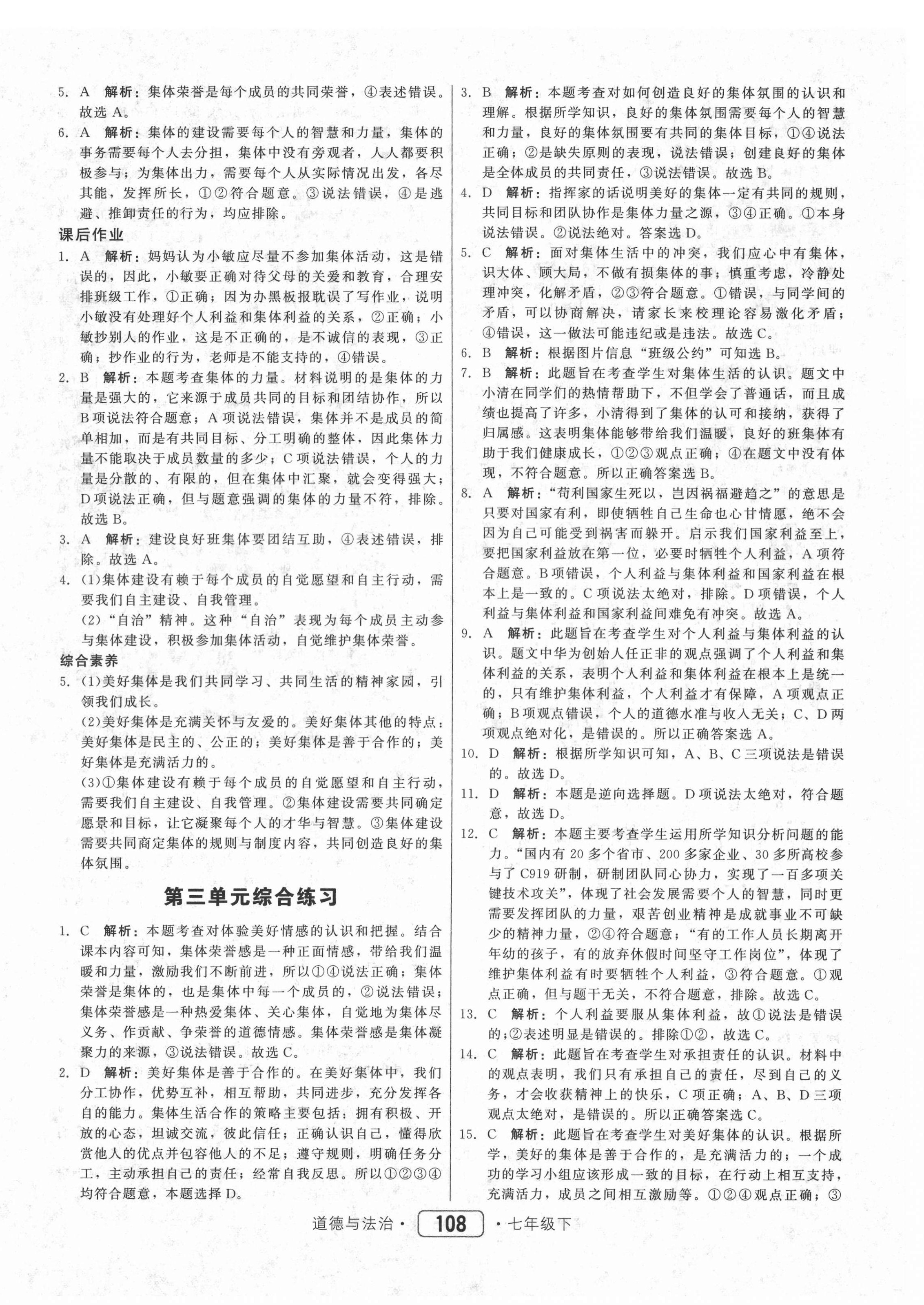 2021年红对勾45分钟作业与单元评估七年级道德与法治下册人教版