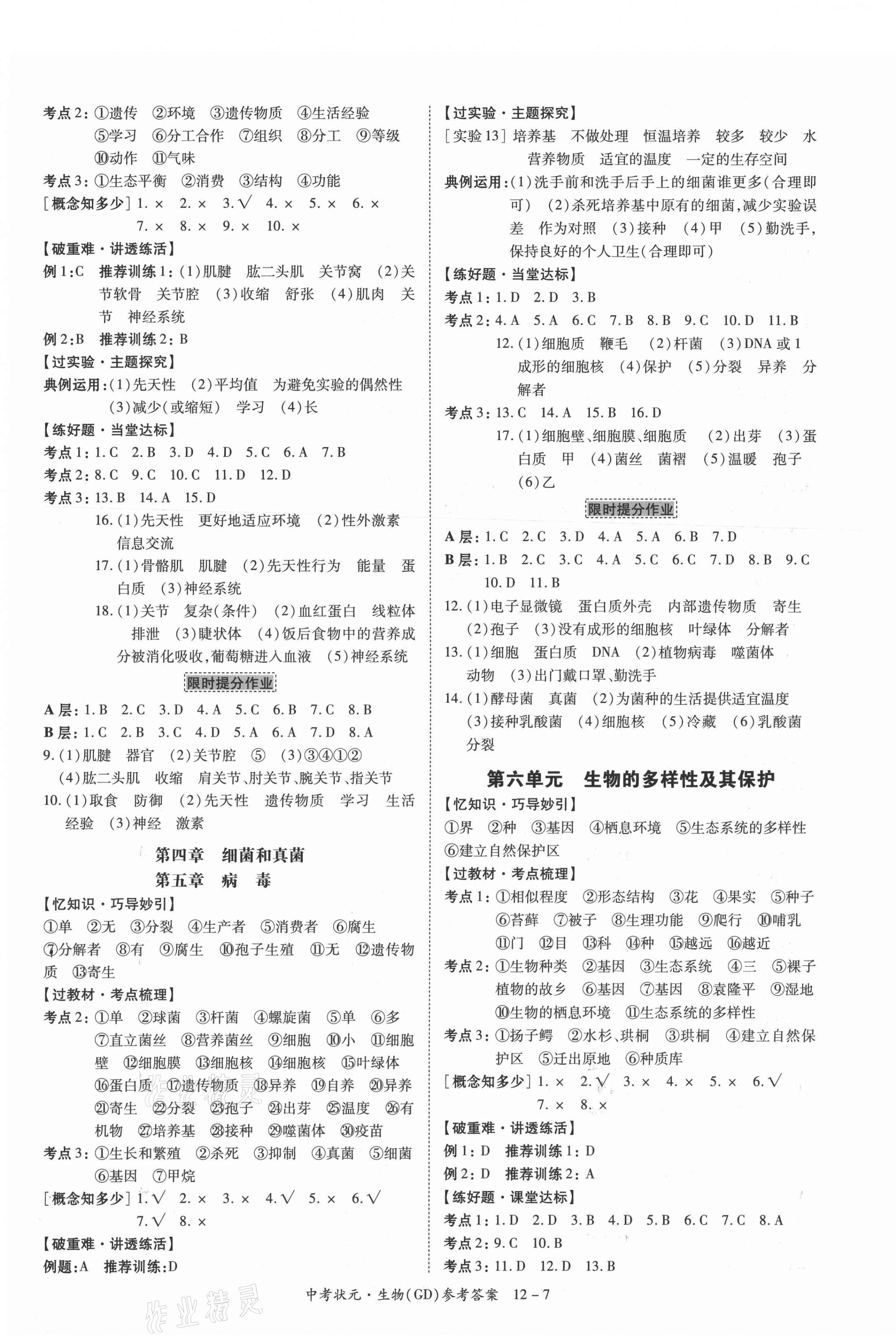 注:目前有些书本章节名称可能整理的还不是很完善,但都是按照顺序排列的,请同学们按照顺序仔细查找。练习册 2021年中考状元生物广东专版 答案主要是用来给同学们做完题方便对答案用的,请勿直接抄袭。