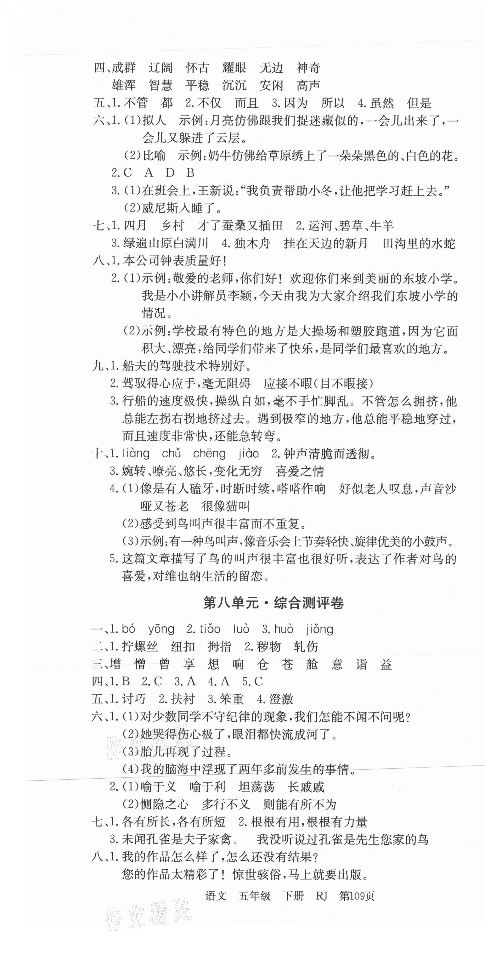 注:目前有些书本章节名称可能整理的还不是很完善,但都是按照顺序排列的,请同学们按照顺序仔细查找。练习册 2021年优优好卷单元测评卷五年级语文下册人教版 答案主要是用来给同学们做完题方便对答案用的,请勿直接抄袭。
