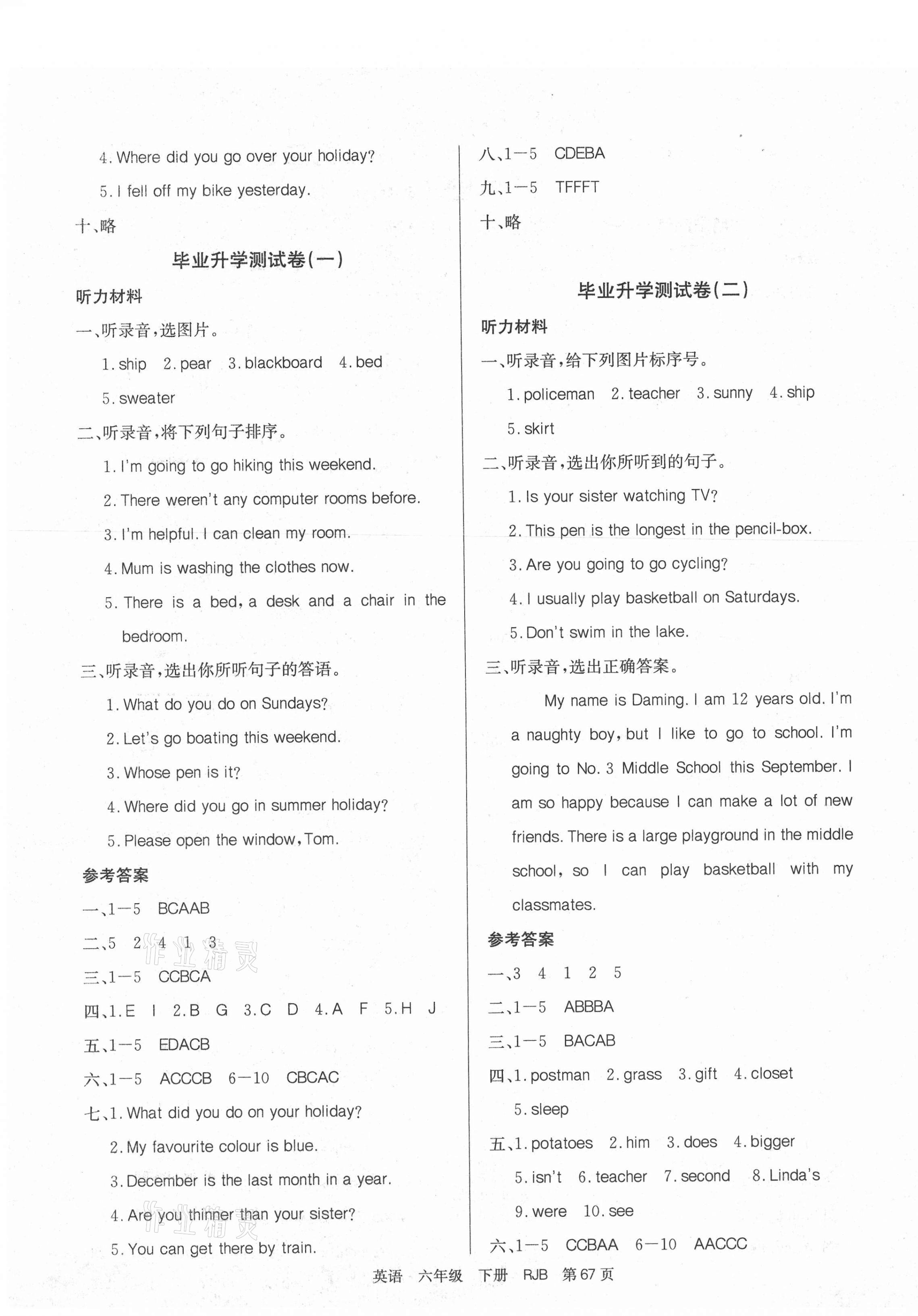 注:目前有些书本章节名称可能整理的还不是很完善,但都是按照顺序排列的,请同学们按照顺序仔细查找。练习册 2021年优优好卷单元测评卷六年级英语下册人教版 答案主要是用来给同学们做完题方便对答案用的,请勿直接抄袭。