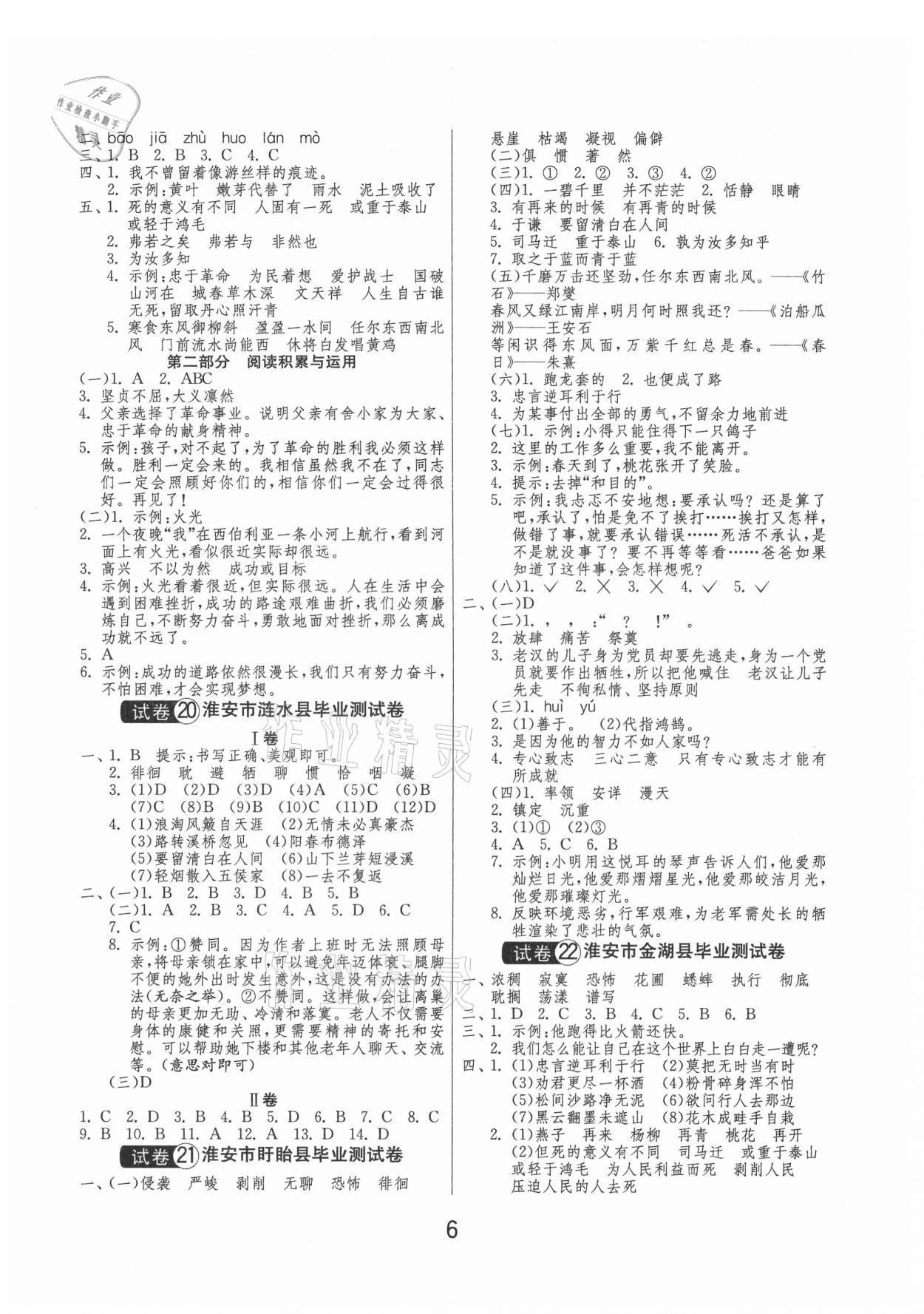 2021年考必胜小学毕业升学考试试卷精选语文淮安专版