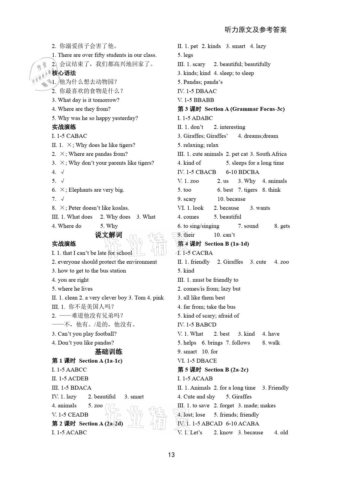 注:目前有些书本章节名称可能整理的还不是很完善,但都是按照顺序排列的,请同学们按照顺序仔细查找。练习册 2021年单元导练七年级英语下册人教新目标 答案主要是用来给同学们做完题方便对答案用的,请勿直接抄袭。