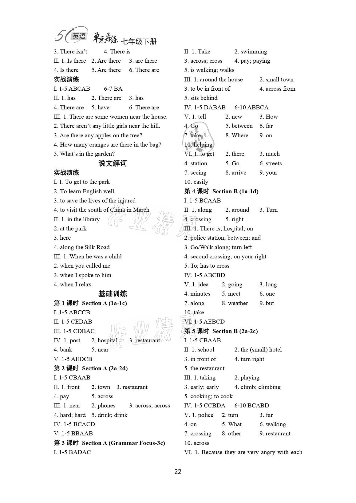 注:目前有些书本章节名称可能整理的还不是很完善,但都是按照顺序排列的,请同学们按照顺序仔细查找。练习册 2021年单元导练七年级英语下册人教新目标 答案主要是用来给同学们做完题方便对答案用的,请勿直接抄袭。