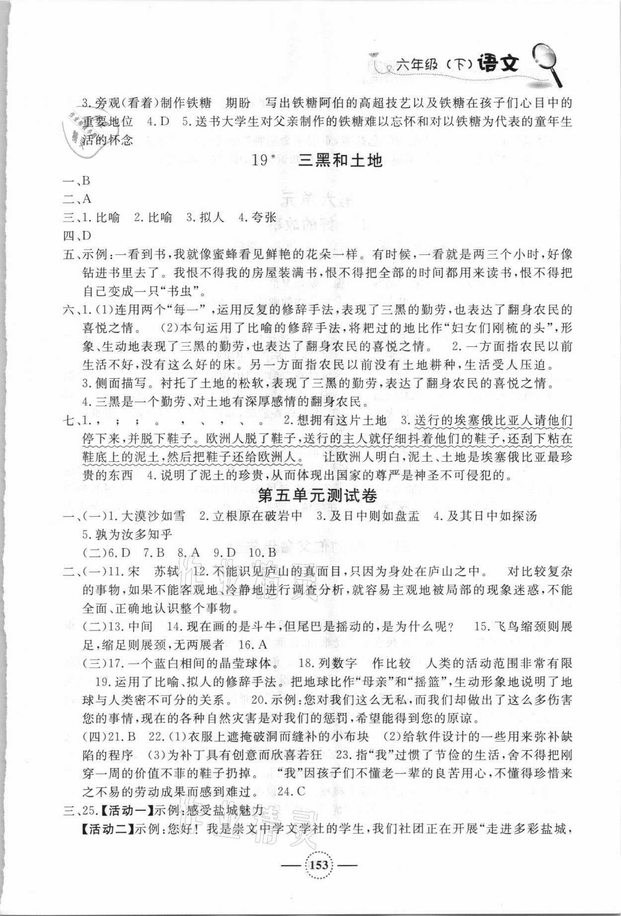 注:目前有些书本章节名称可能整理的还不是很完善,但都是按照顺序排列的,请同学们按照顺序仔细查找。练习册 2021年钟书金牌课课练六年级语文下册人教版54制 答案主要是用来给同学们做完题方便对答案用的,请勿直接抄袭。