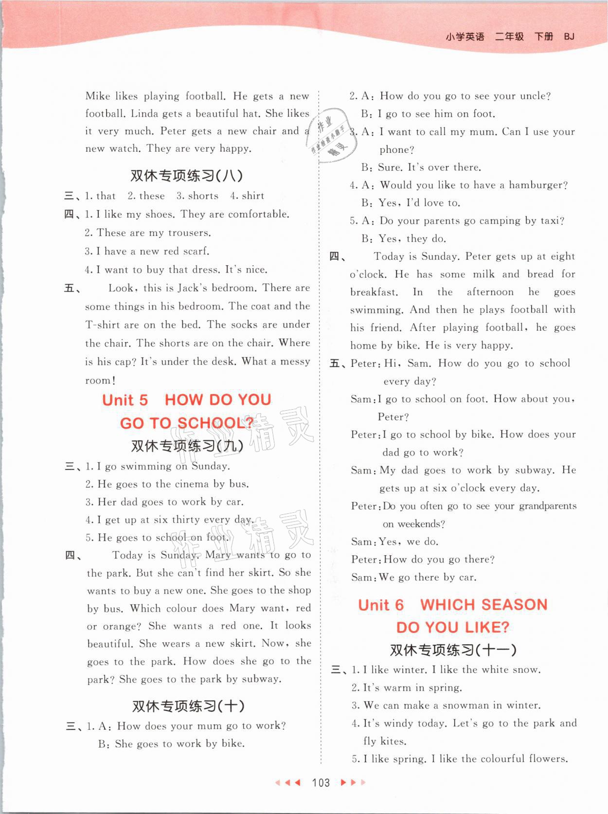 注:目前有些书本章节名称可能整理的还不是很完善,但都是按照顺序排列的,请同学们按照顺序仔细查找。练习册 2021年53天天练二年级英语下册北京课改版 答案主要是用来给同学们做完题方便对答案用的,请勿直接抄袭。