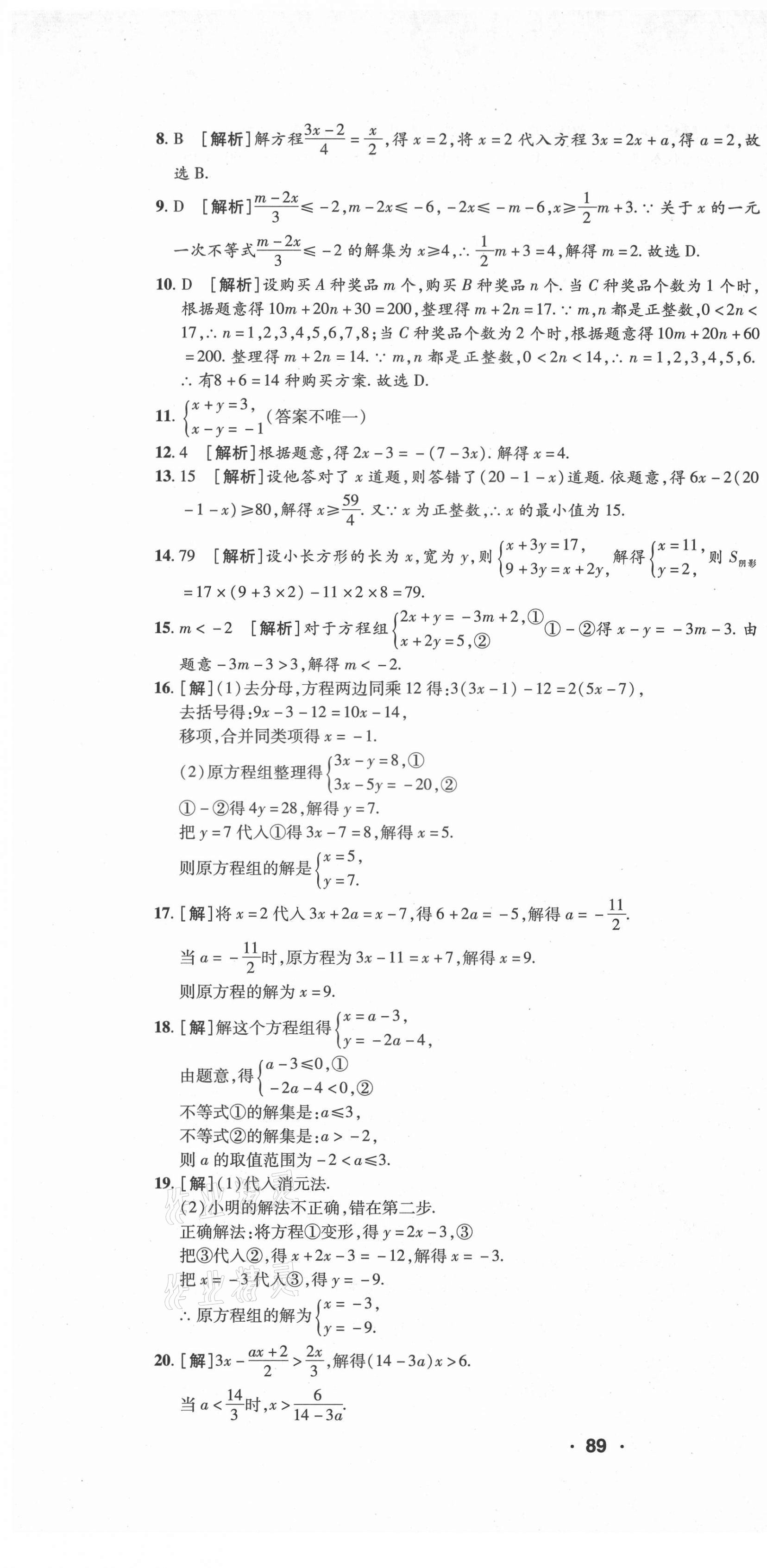 注:目前有些书本章节名称可能整理的还不是很完善,但都是按照顺序排列的,请同学们按照顺序仔细查找。练习册 2021年99加1活页卷七年级数学下册华师大版 答案主要是用来给同学们做完题方便对答案用的,请勿直接抄袭。