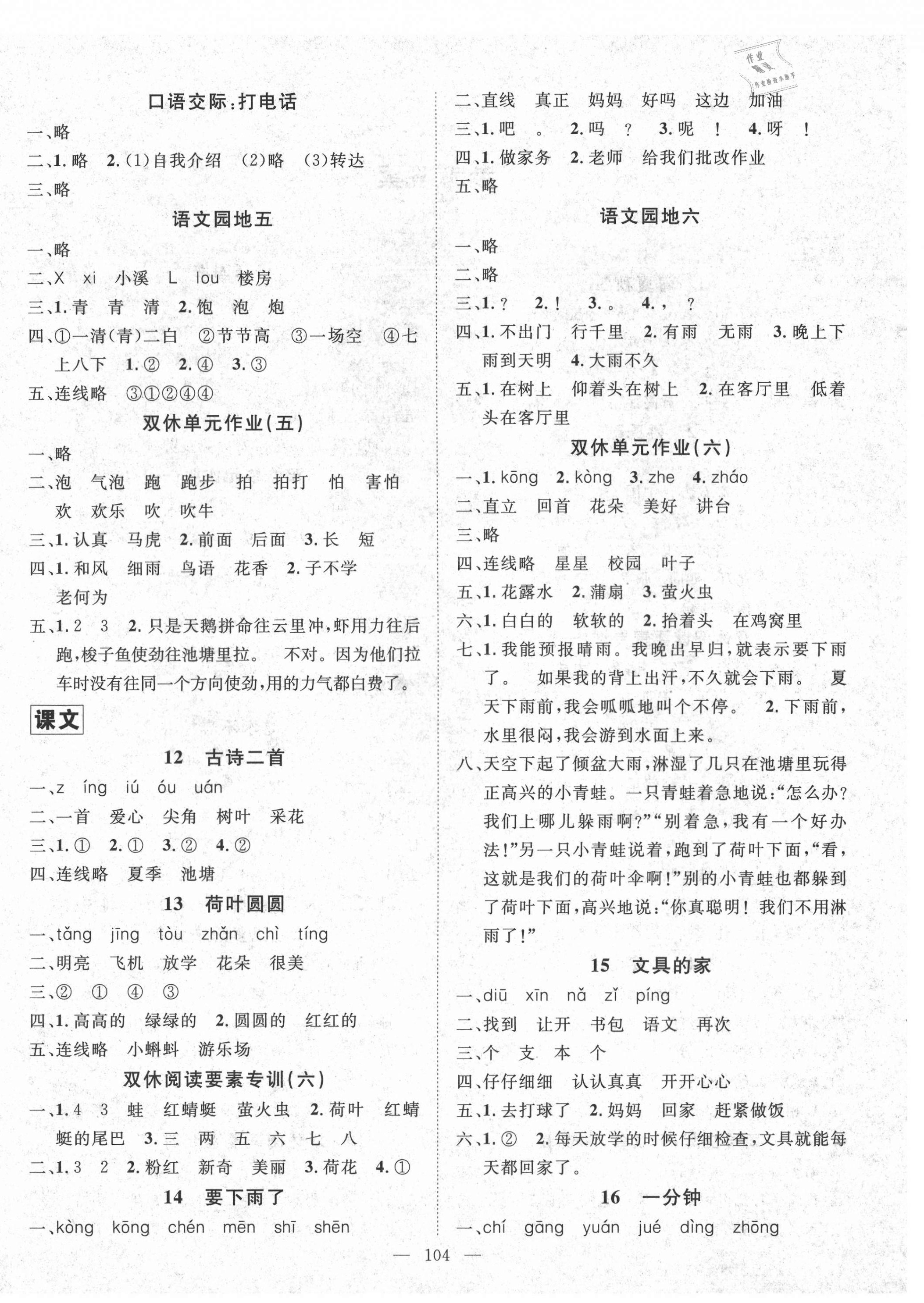 注:目前有些书本章节名称可能整理的还不是很完善,但都是按照顺序排列的,请同学们按照顺序仔细查找。练习册 2021年优质课堂快乐成长一年级语文下册人教版 答案主要是用来给同学们做完题方便对答案用的,请勿直接抄袭。