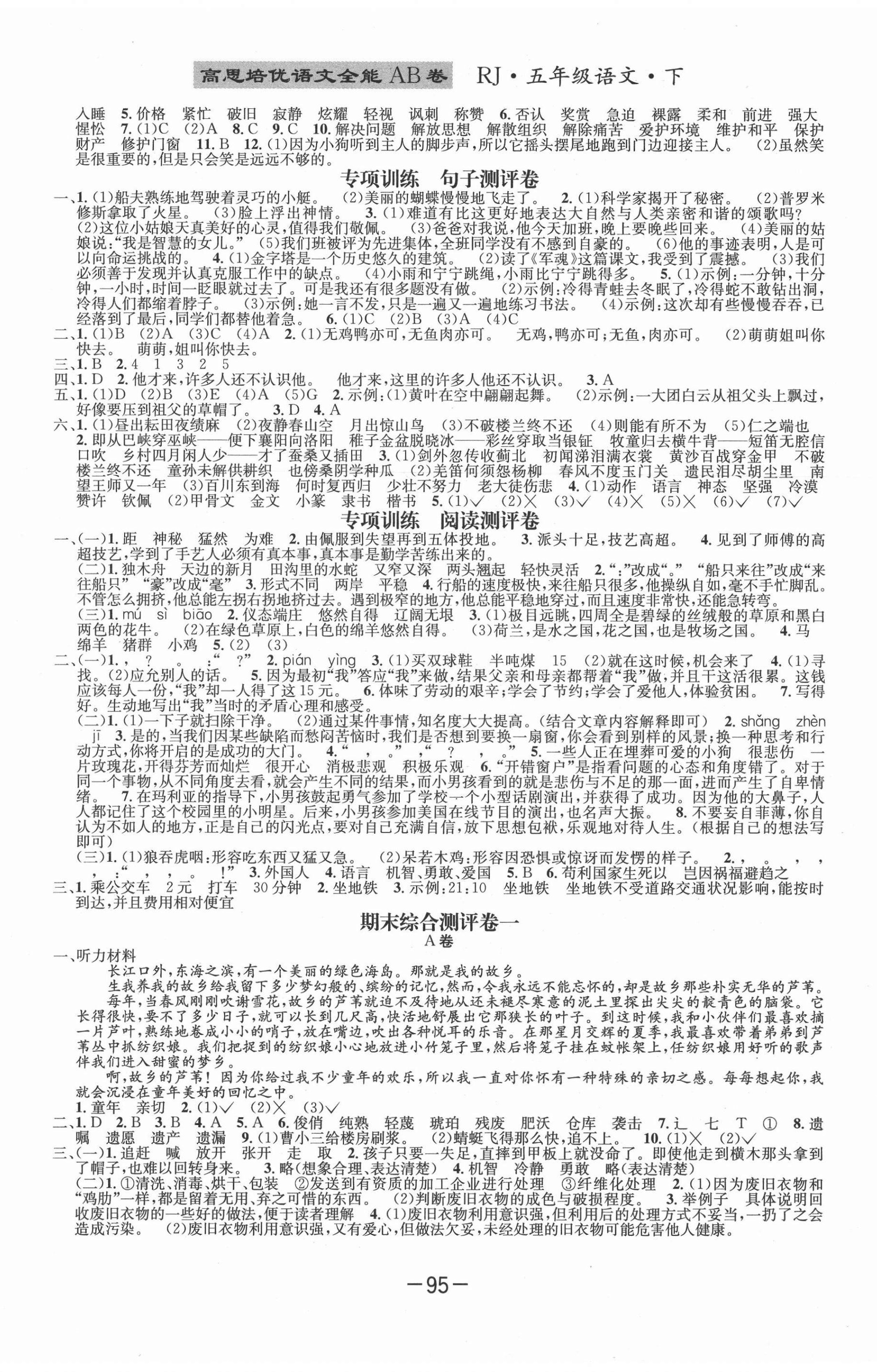 注:目前有些书本章节名称可能整理的还不是很完善,但都是按照顺序排列的,请同学们按照顺序仔细查找。练习册 2021年高思全能ab卷五年级语文下册人教版 答案主要是用来给同学们做完题方便对答案用的,请勿直接抄袭。