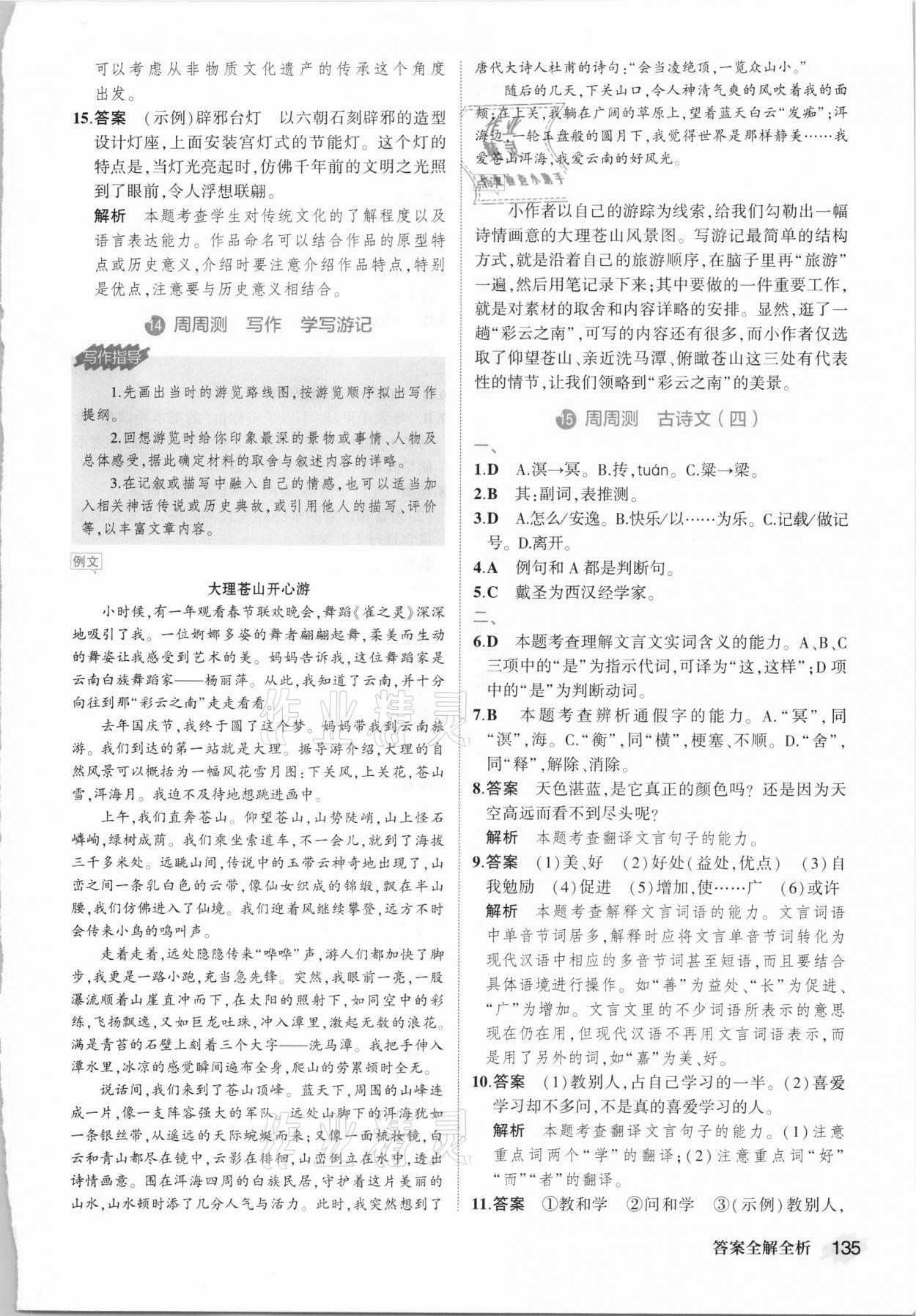 注:目前有些书本章节名称可能整理的还不是很完善,但都是按照顺序排列的,请同学们按照顺序仔细查找。练习册 2021年晨读暮写周周测初中语文八年级下册人教版 答案主要是用来给同学们做完题方便对答案用的,请勿直接抄袭。
