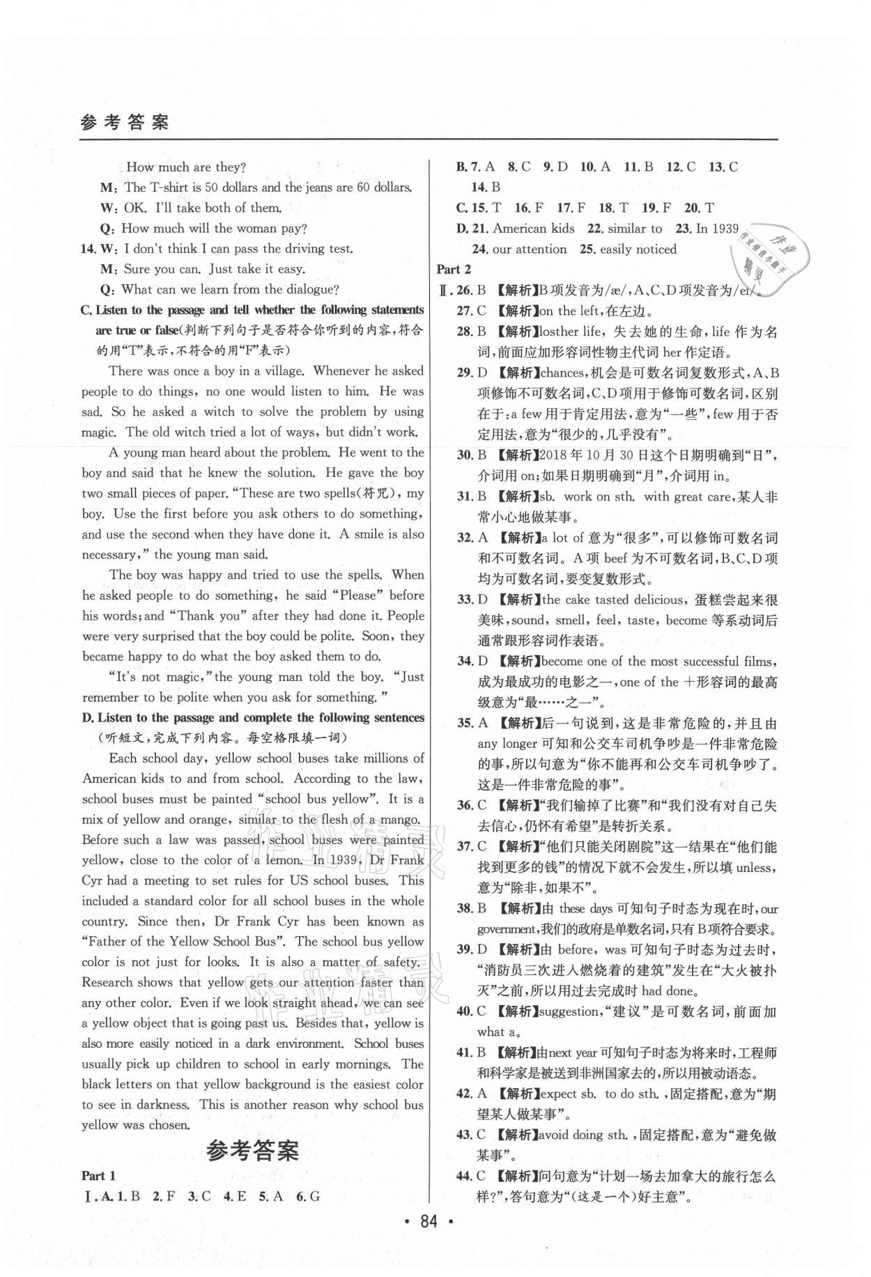 - 参考答案第84页