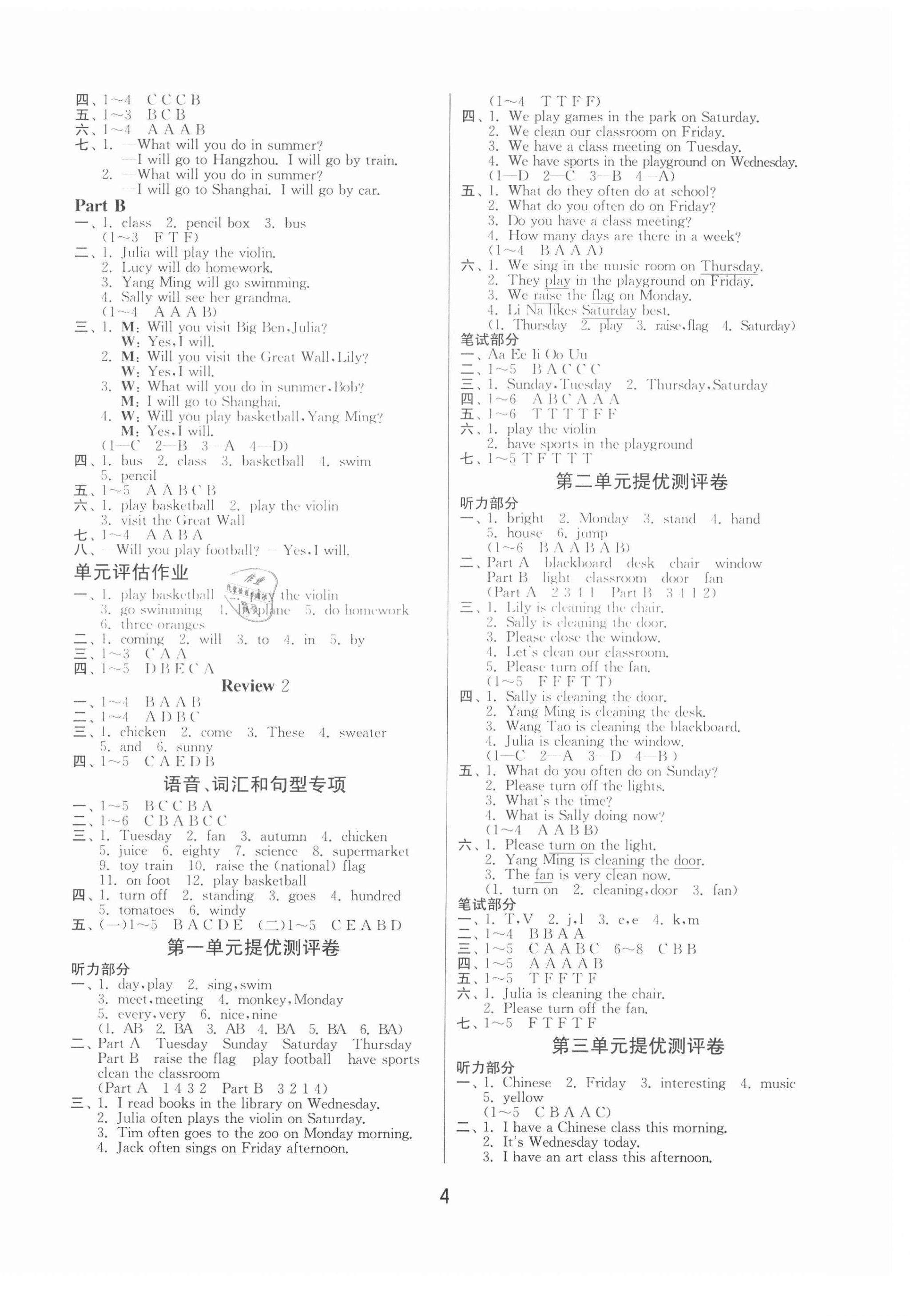 注:目前有些书本章节名称可能整理的还不是很完善,但都是按照顺序排列的,请同学们按照顺序仔细查找。练习册 2021年课时训练四年级英语下册闽教版江苏人民出版社 答案主要是用来给同学们做完题方便对答案用的,请勿直接抄袭。