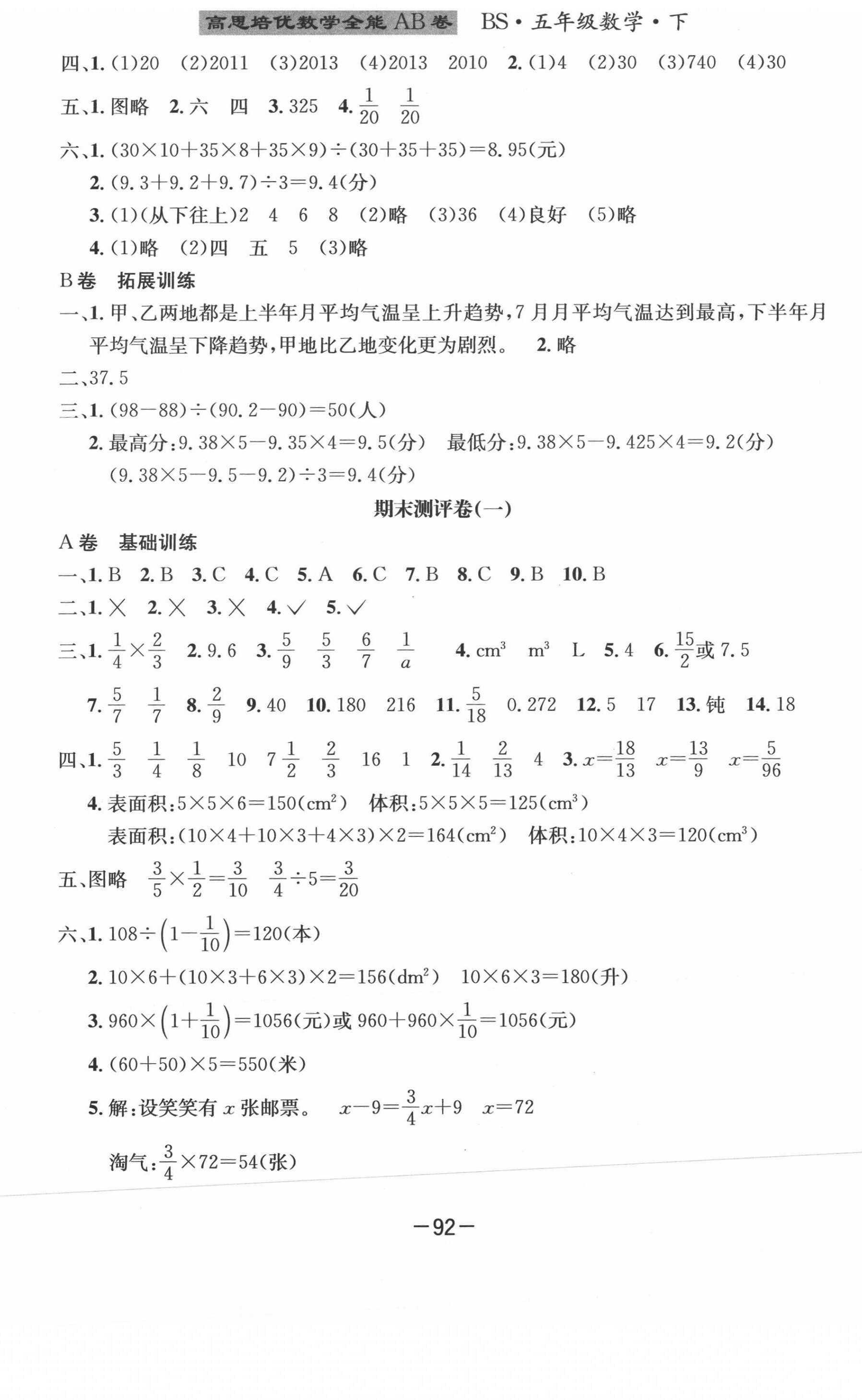 注:目前有些书本章节名称可能整理的还不是很完善,但都是按照顺序排列的,请同学们按照顺序仔细查找。练习册 2021年高思培优数学全能AB卷五年级下册人教版成都专版 答案主要是用来给同学们做完题方便对答案用的,请勿直接抄袭。