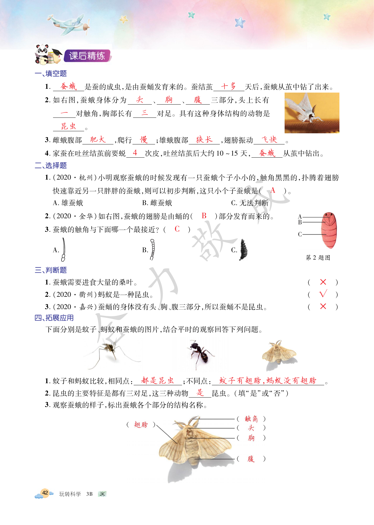 注:目前有些书本章节名称可能整理的还不是很完善,但都是按照顺序排列的,请同学们按照顺序仔细查找。练习册 2021年玩转科学三年级下册教科版B 答案主要是用来给同学们做完题方便对答案用的,请勿直接抄袭。