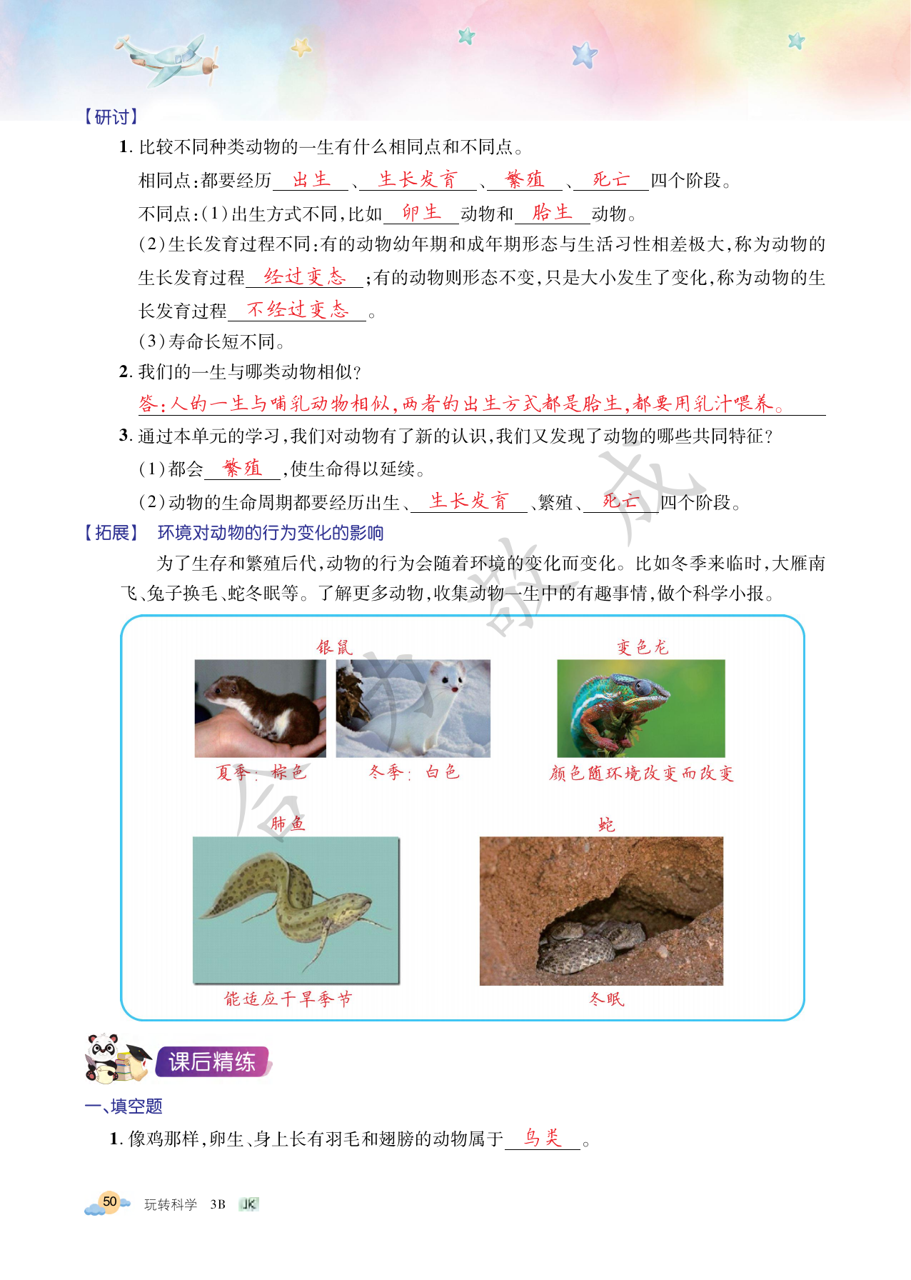 注:目前有些书本章节名称可能整理的还不是很完善,但都是按照顺序排列的,请同学们按照顺序仔细查找。练习册 2021年玩转科学三年级下册教科版B 答案主要是用来给同学们做完题方便对答案用的,请勿直接抄袭。