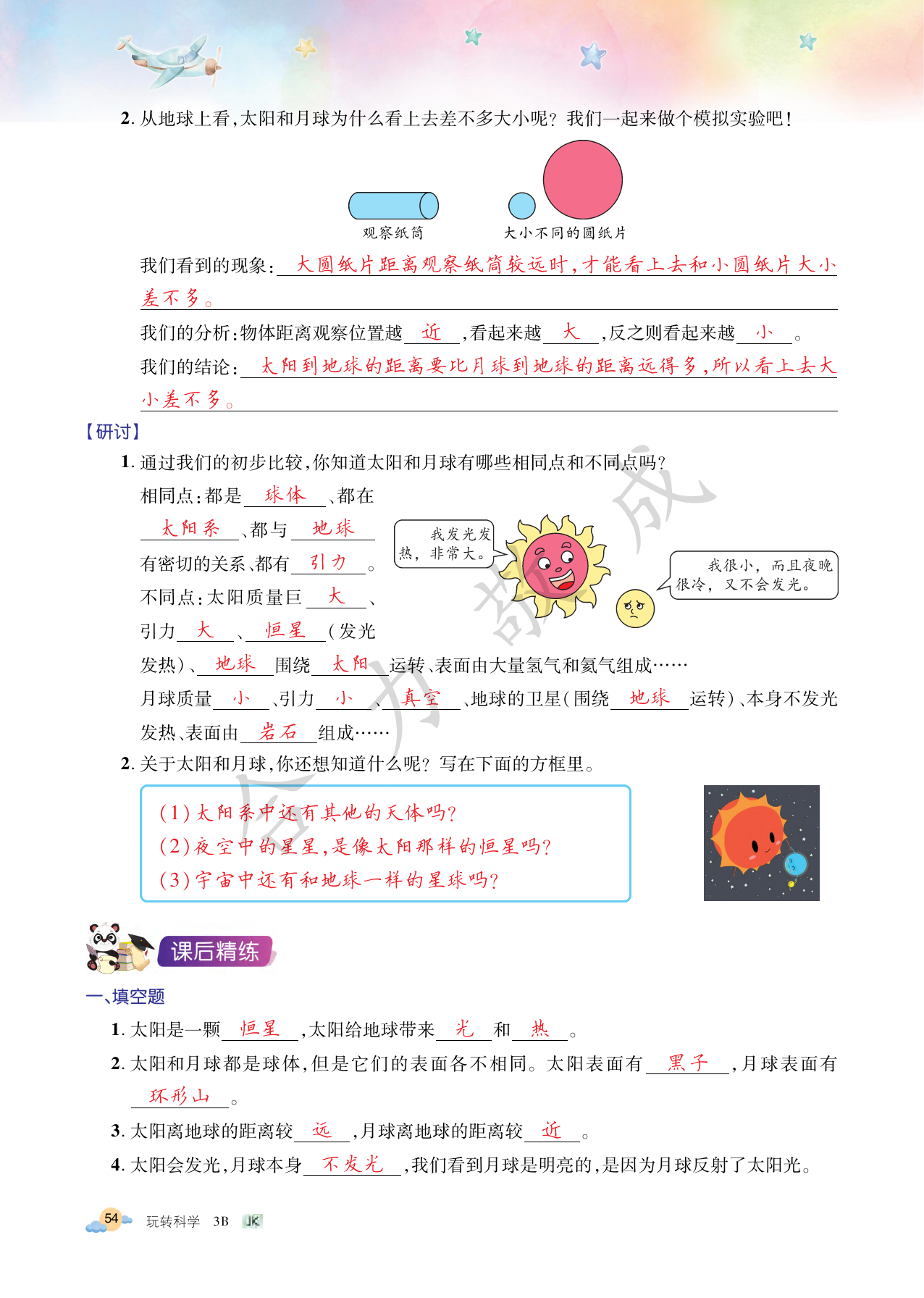 注:目前有些书本章节名称可能整理的还不是很完善,但都是按照顺序排列的,请同学们按照顺序仔细查找。练习册 2021年玩转科学三年级下册教科版B 答案主要是用来给同学们做完题方便对答案用的,请勿直接抄袭。