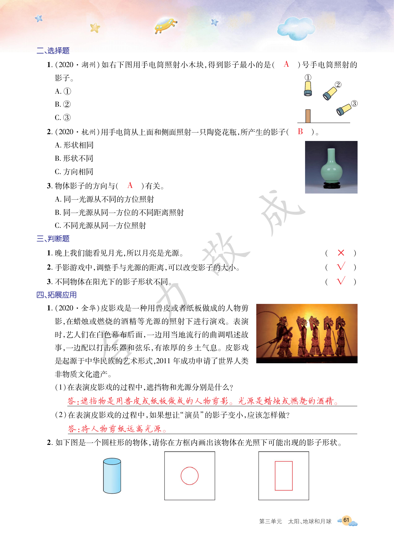 注:目前有些书本章节名称可能整理的还不是很完善,但都是按照顺序排列的,请同学们按照顺序仔细查找。练习册 2021年玩转科学三年级下册教科版B 答案主要是用来给同学们做完题方便对答案用的,请勿直接抄袭。