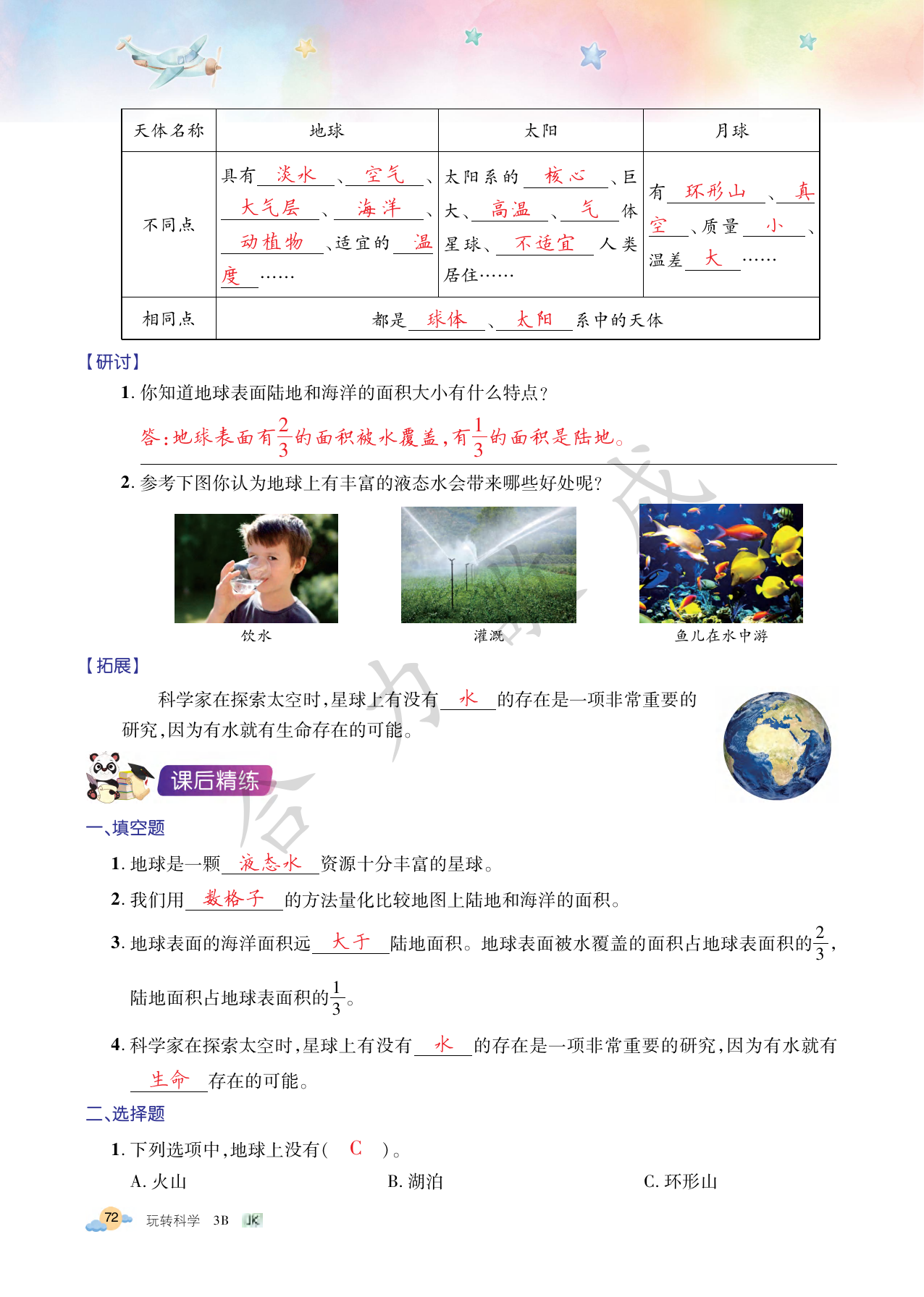注:目前有些书本章节名称可能整理的还不是很完善,但都是按照顺序排列的,请同学们按照顺序仔细查找。练习册 2021年玩转科学三年级下册教科版B 答案主要是用来给同学们做完题方便对答案用的,请勿直接抄袭。