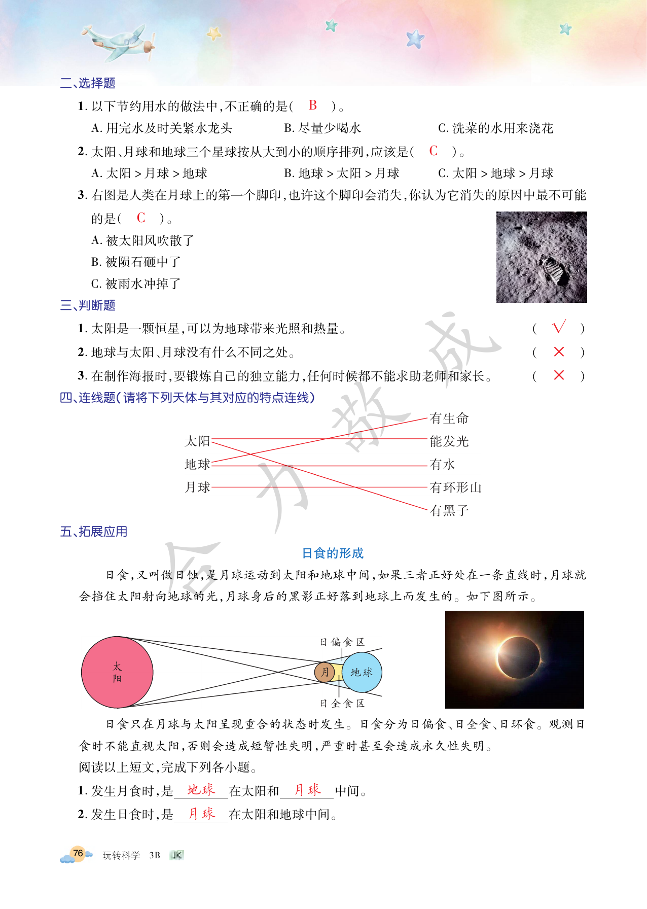 注:目前有些书本章节名称可能整理的还不是很完善,但都是按照顺序排列的,请同学们按照顺序仔细查找。练习册 2021年玩转科学三年级下册教科版B 答案主要是用来给同学们做完题方便对答案用的,请勿直接抄袭。