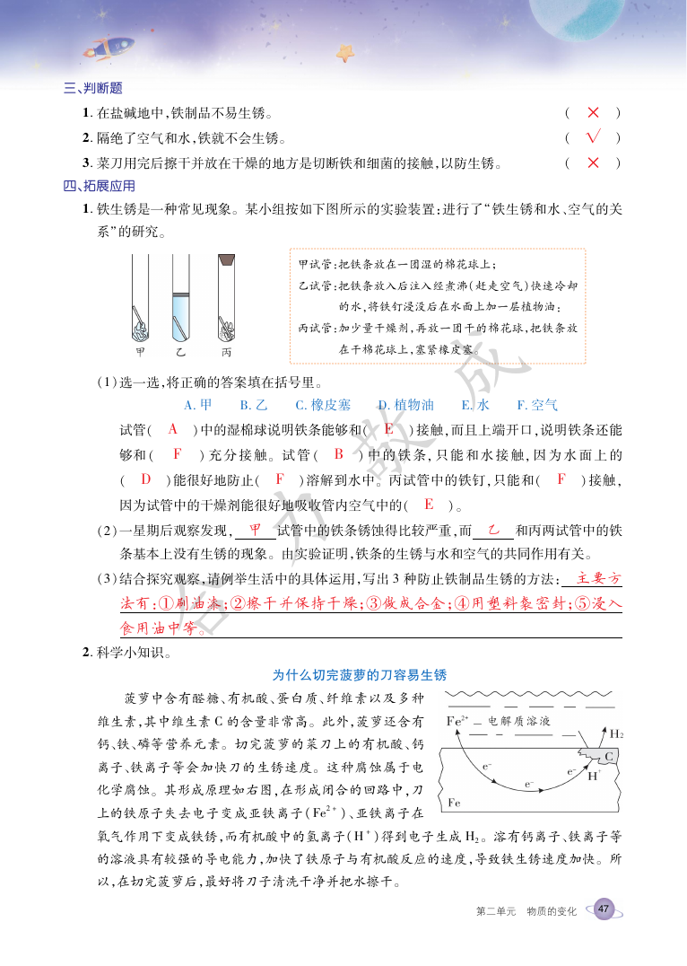 注:目前有些书本章节名称可能整理的还不是很完善,但都是按照顺序排列的,请同学们按照顺序仔细查找。练习册 2021年玩转科学六年级下册教科版B 答案主要是用来给同学们做完题方便对答案用的,请勿直接抄袭。