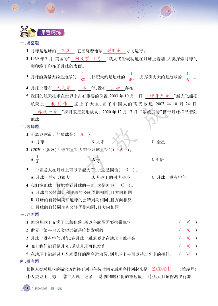 注:目前有些书本章节名称可能整理的还不是很完善,但都是按照顺序排列的,请同学们按照顺序仔细查找。练习册 2021年玩转科学六年级下册教科版B 答案主要是用来给同学们做完题方便对答案用的,请勿直接抄袭。