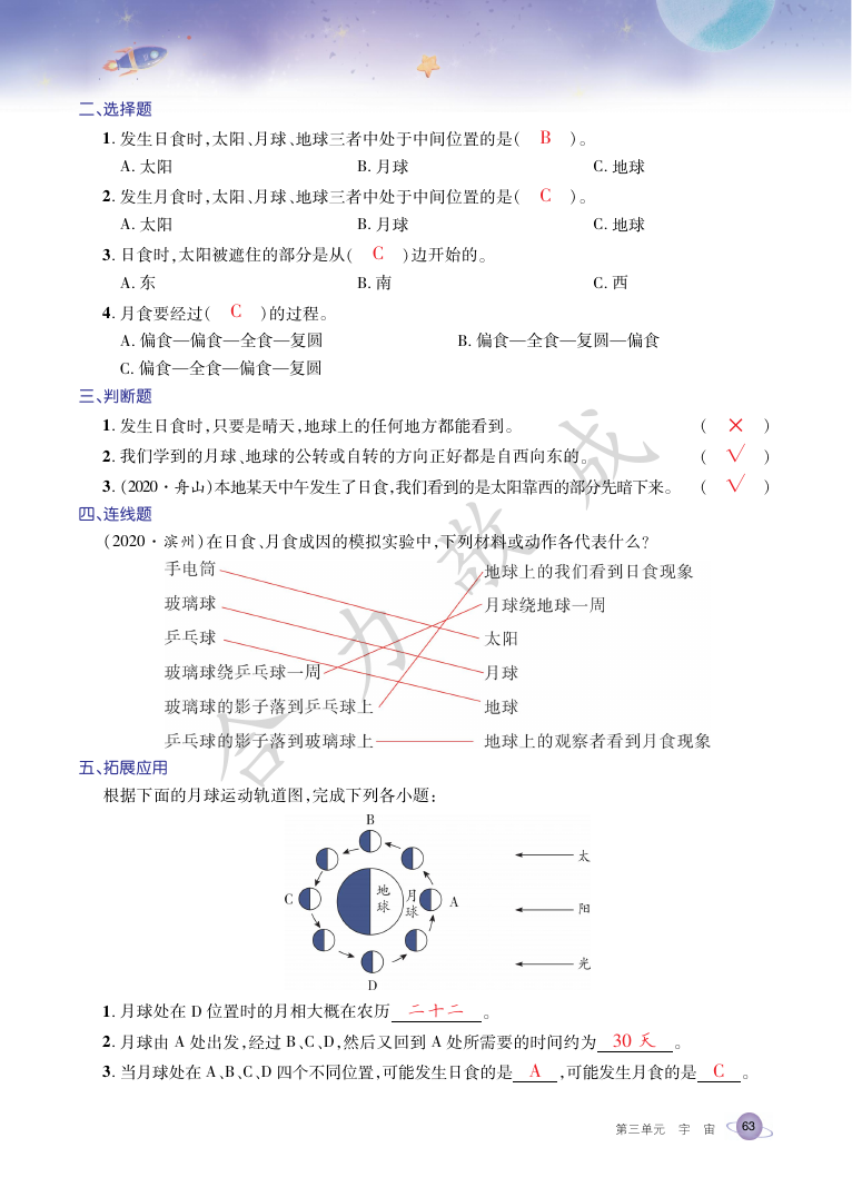 注:目前有些书本章节名称可能整理的还不是很完善,但都是按照顺序排列的,请同学们按照顺序仔细查找。练习册 2021年玩转科学六年级下册教科版B 答案主要是用来给同学们做完题方便对答案用的,请勿直接抄袭。
