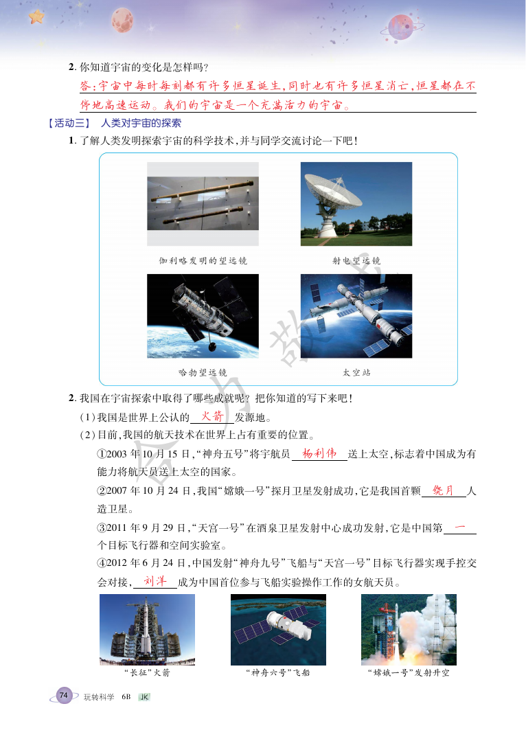 注:目前有些书本章节名称可能整理的还不是很完善,但都是按照顺序排列的,请同学们按照顺序仔细查找。练习册 2021年玩转科学六年级下册教科版B 答案主要是用来给同学们做完题方便对答案用的,请勿直接抄袭。