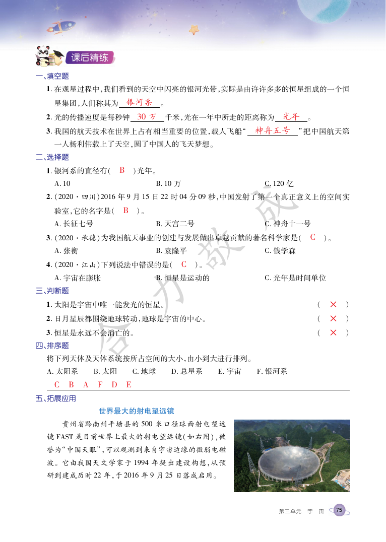 注:目前有些书本章节名称可能整理的还不是很完善,但都是按照顺序排列的,请同学们按照顺序仔细查找。练习册 2021年玩转科学六年级下册教科版B 答案主要是用来给同学们做完题方便对答案用的,请勿直接抄袭。