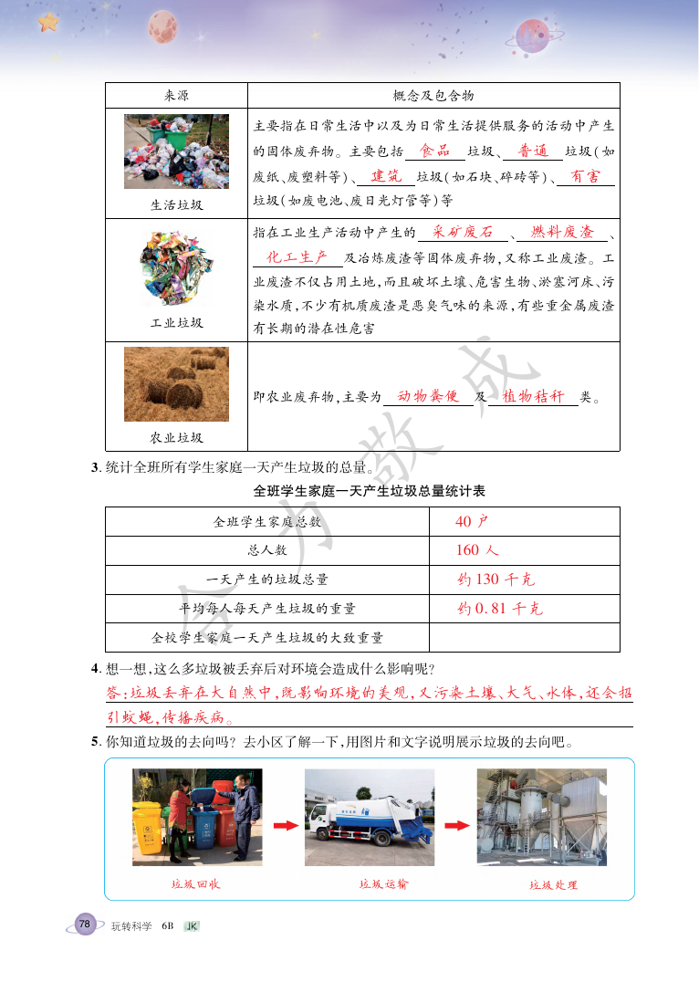 注:目前有些书本章节名称可能整理的还不是很完善,但都是按照顺序排列的,请同学们按照顺序仔细查找。练习册 2021年玩转科学六年级下册教科版B 答案主要是用来给同学们做完题方便对答案用的,请勿直接抄袭。