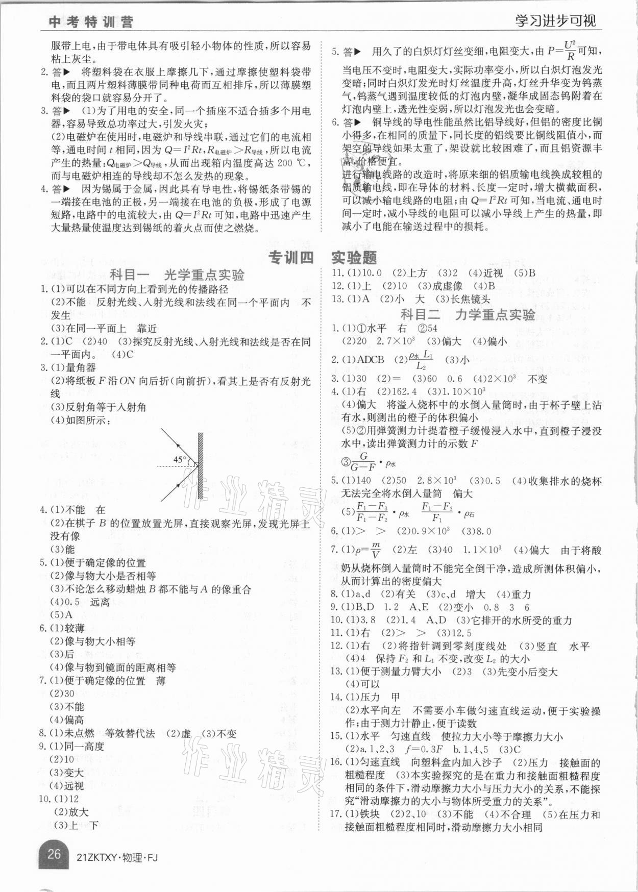 注:目前有些书本章节名称可能整理的还不是很完善,但都是按照顺序排列的,请同学们按照顺序仔细查找。练习册 2021年中考特训营物理福建专版 答案主要是用来给同学们做完题方便对答案用的,请勿直接抄袭。