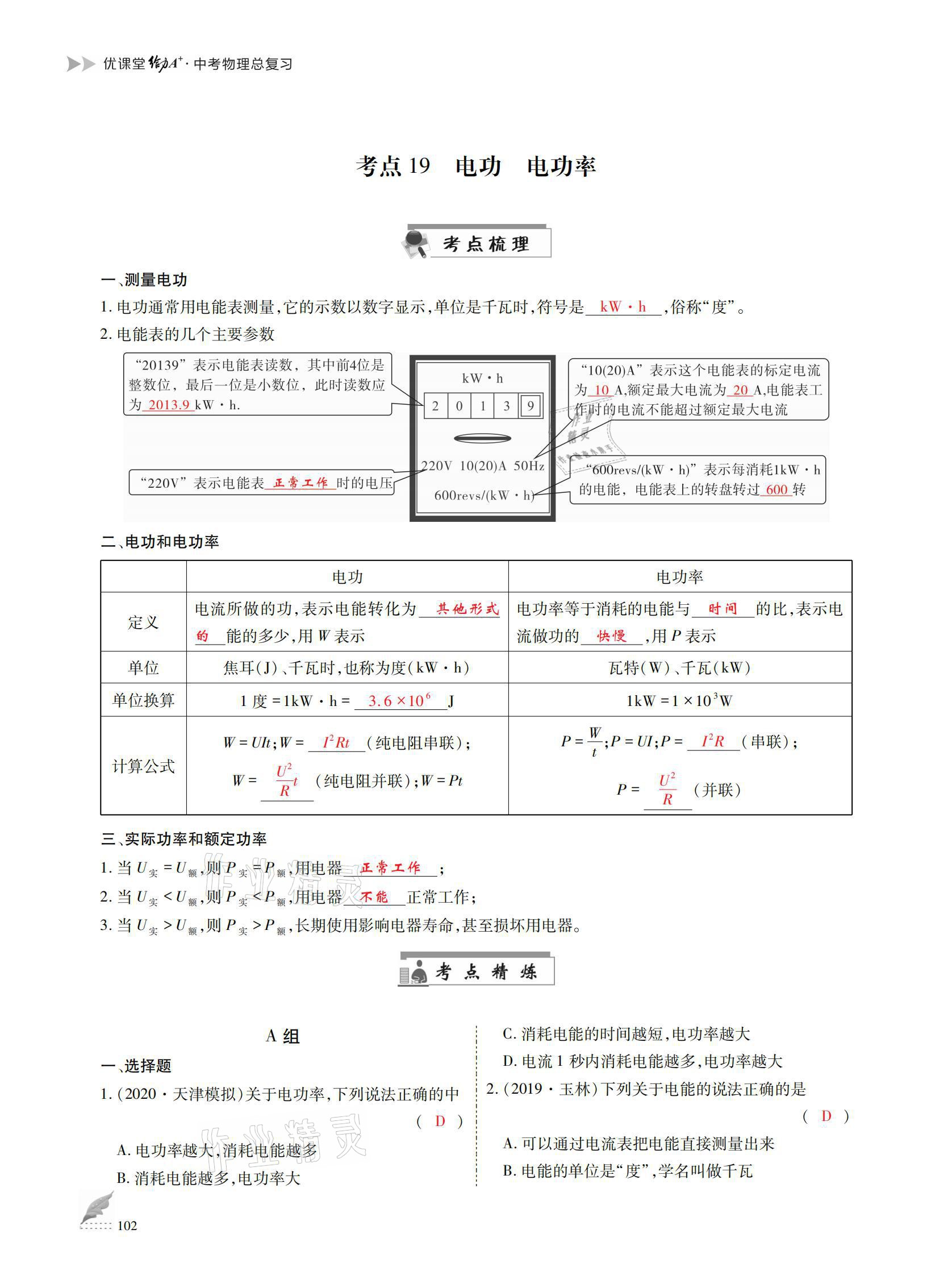 注:目前有些书本章节名称可能整理的还不是很完善,但都是按照顺序排列的,请同学们按照顺序仔细查找。练习册 2021年优课堂给力A加中考总复习物理 答案主要是用来给同学们做完题方便对答案用的,请勿直接抄袭。
