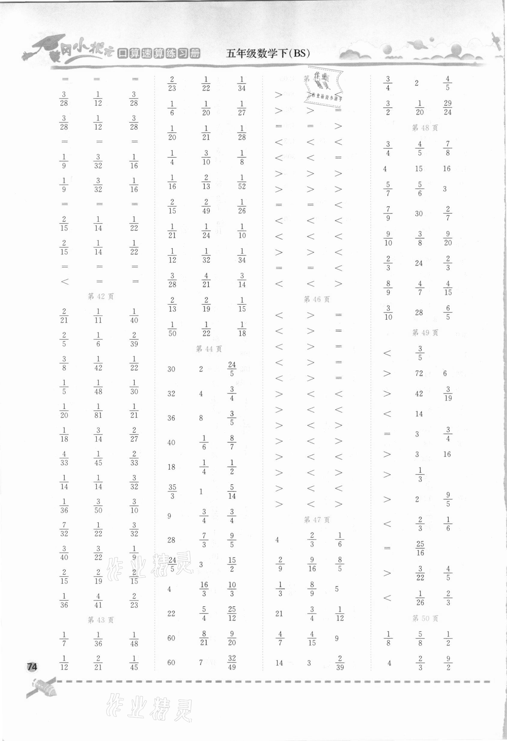 2021年黄冈小状元口算速算练习册五年级数学下册北师大版广东专版