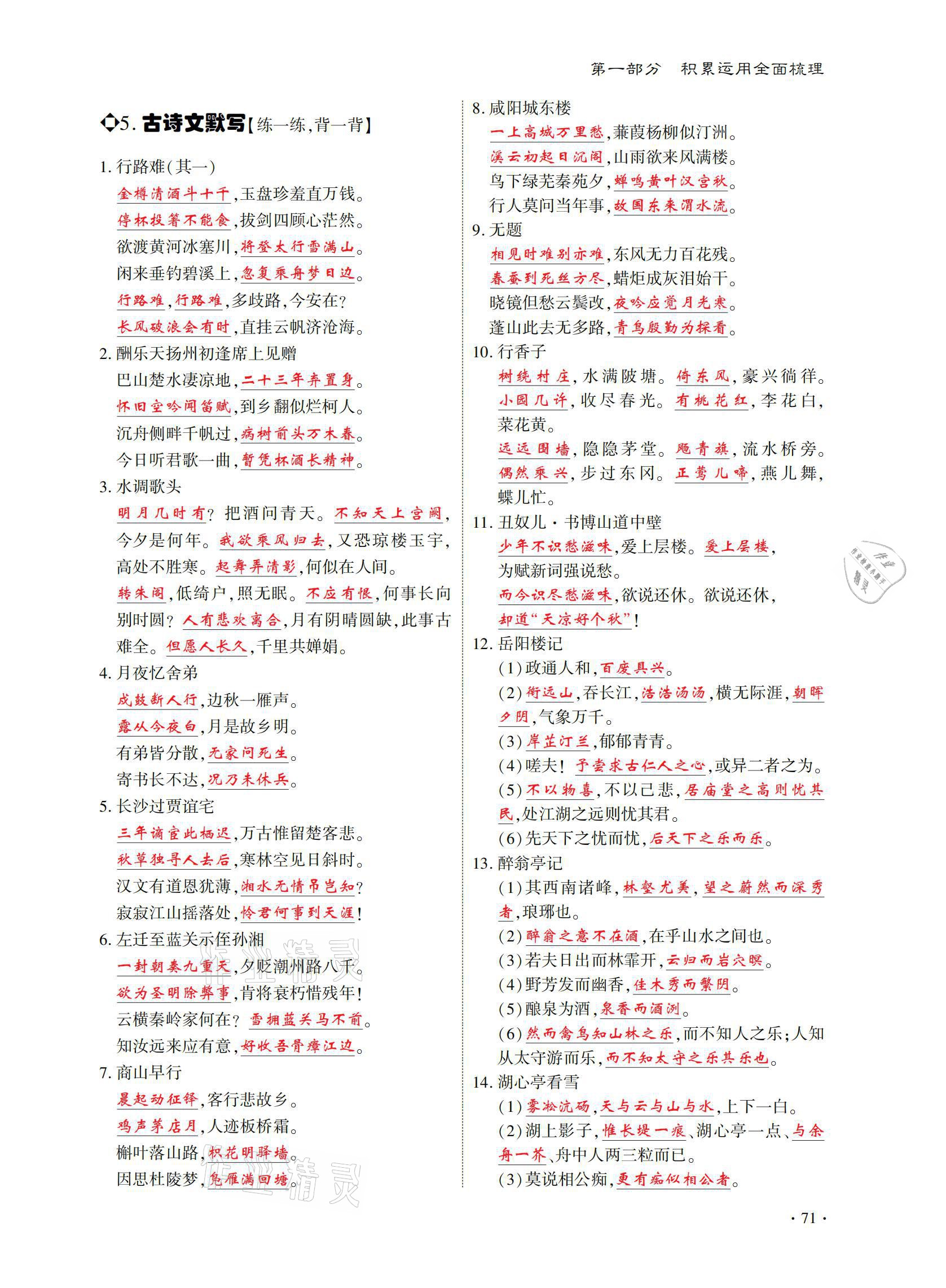 注:目前有些书本章节名称可能整理的还不是很完善,但都是按照顺序排列的,请同学们按照顺序仔细查找。练习册 2021年优课堂给力A加中考语文总复习 答案主要是用来给同学们做完题方便对答案用的,请勿直接抄袭。