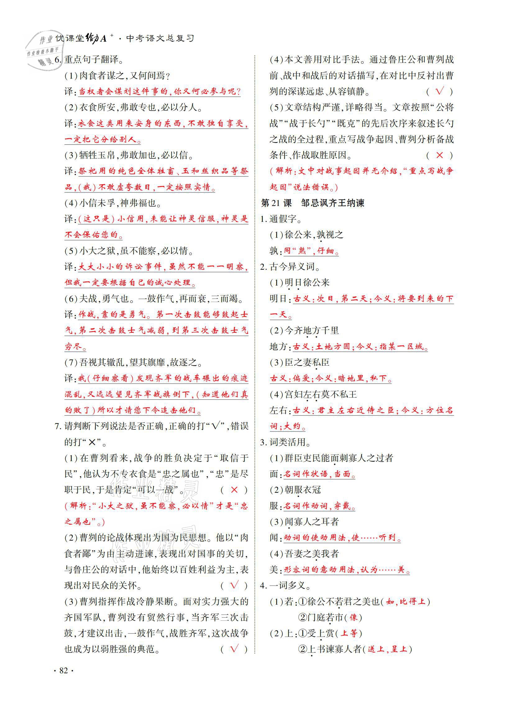 注:目前有些书本章节名称可能整理的还不是很完善,但都是按照顺序排列的,请同学们按照顺序仔细查找。练习册 2021年优课堂给力A加中考语文总复习 答案主要是用来给同学们做完题方便对答案用的,请勿直接抄袭。