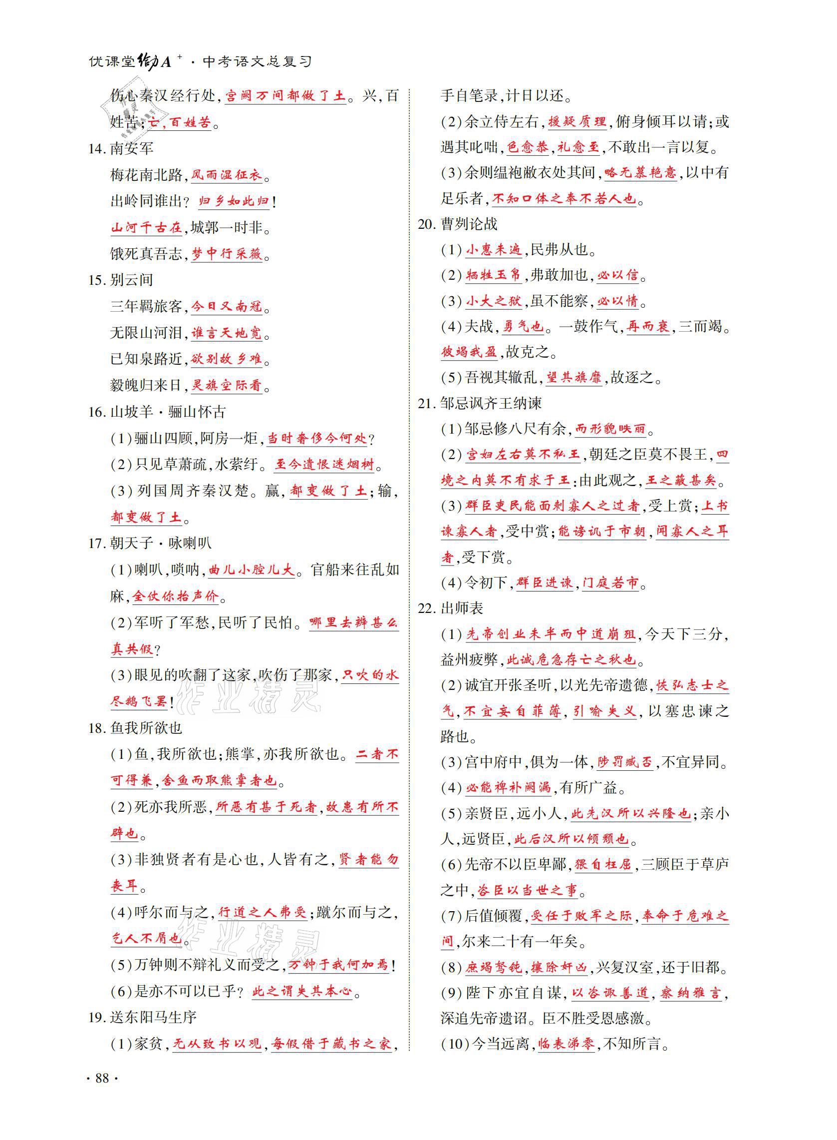 注:目前有些书本章节名称可能整理的还不是很完善,但都是按照顺序排列的,请同学们按照顺序仔细查找。练习册 2021年优课堂给力A加中考语文总复习 答案主要是用来给同学们做完题方便对答案用的,请勿直接抄袭。