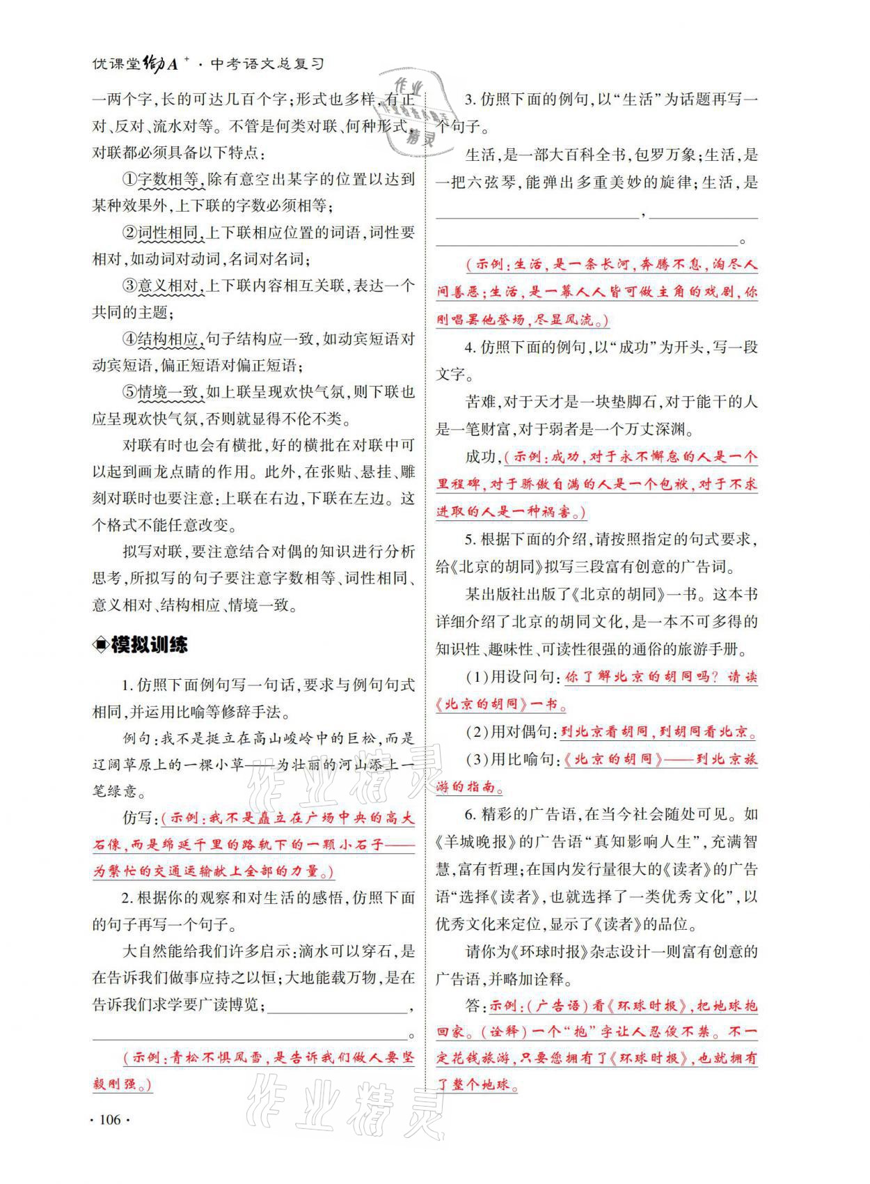 注:目前有些书本章节名称可能整理的还不是很完善,但都是按照顺序排列的,请同学们按照顺序仔细查找。练习册 2021年优课堂给力A加中考语文总复习 答案主要是用来给同学们做完题方便对答案用的,请勿直接抄袭。