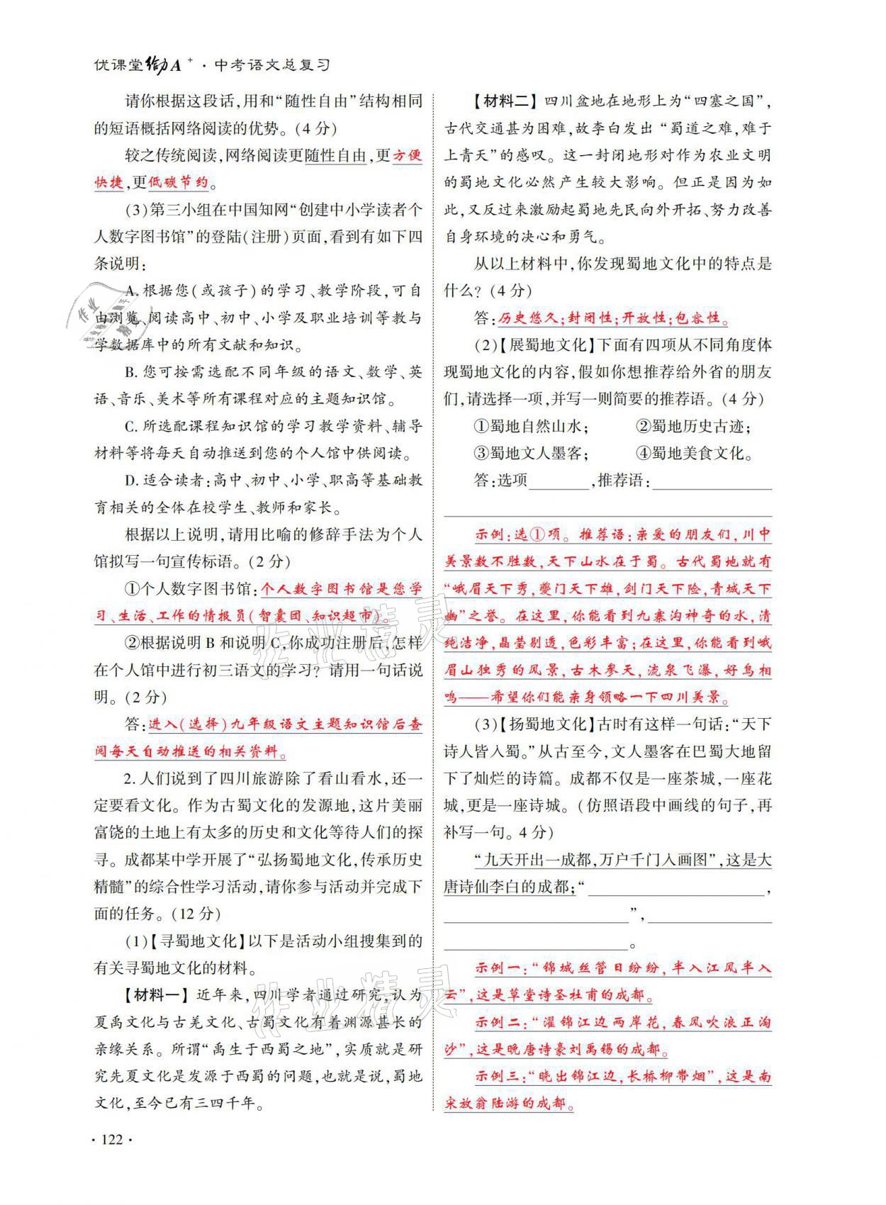 注:目前有些书本章节名称可能整理的还不是很完善,但都是按照顺序排列的,请同学们按照顺序仔细查找。练习册 2021年优课堂给力A加中考语文总复习 答案主要是用来给同学们做完题方便对答案用的,请勿直接抄袭。