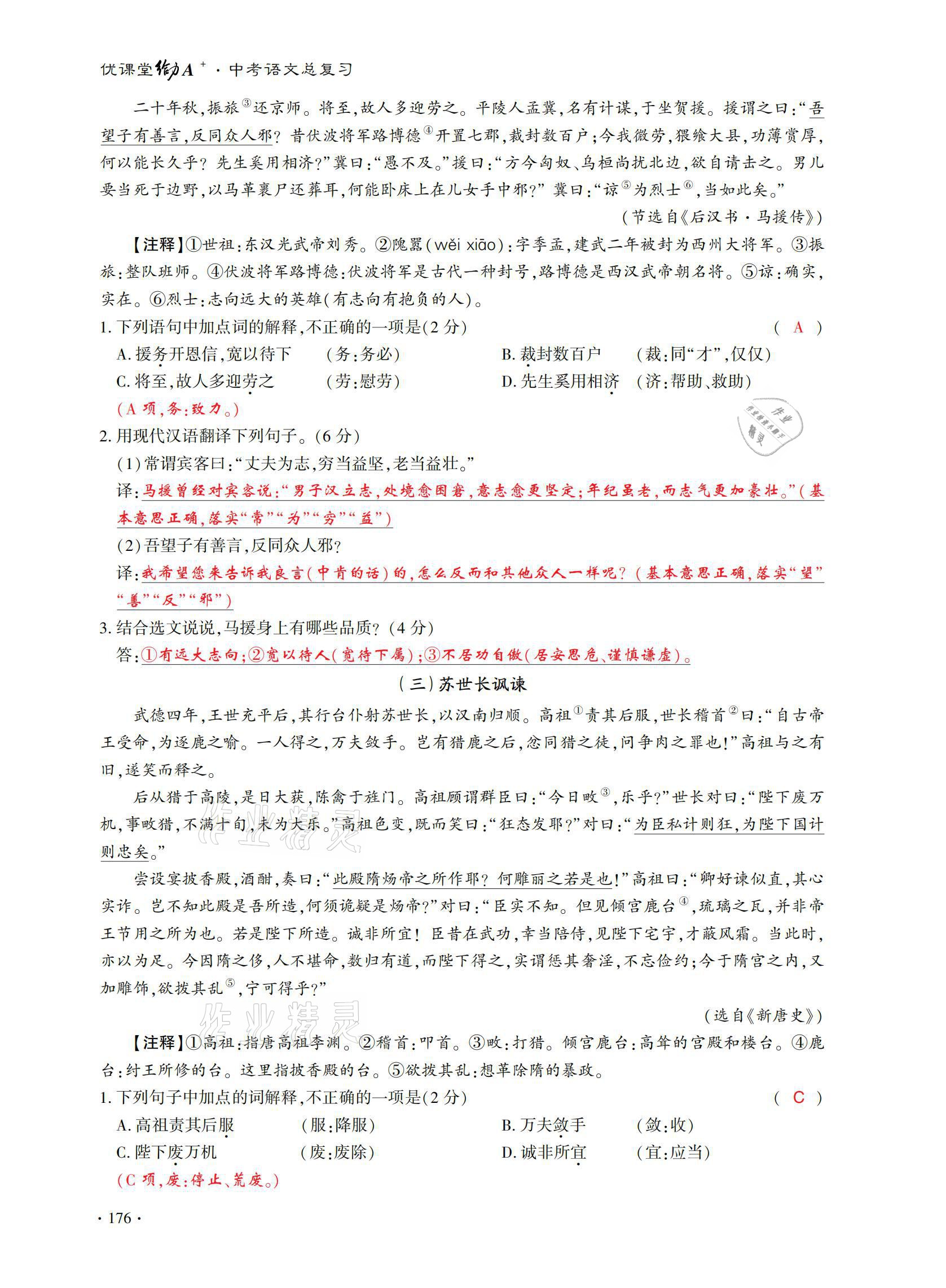注:目前有些书本章节名称可能整理的还不是很完善,但都是按照顺序排列的,请同学们按照顺序仔细查找。练习册 2021年优课堂给力A加中考语文总复习 答案主要是用来给同学们做完题方便对答案用的,请勿直接抄袭。