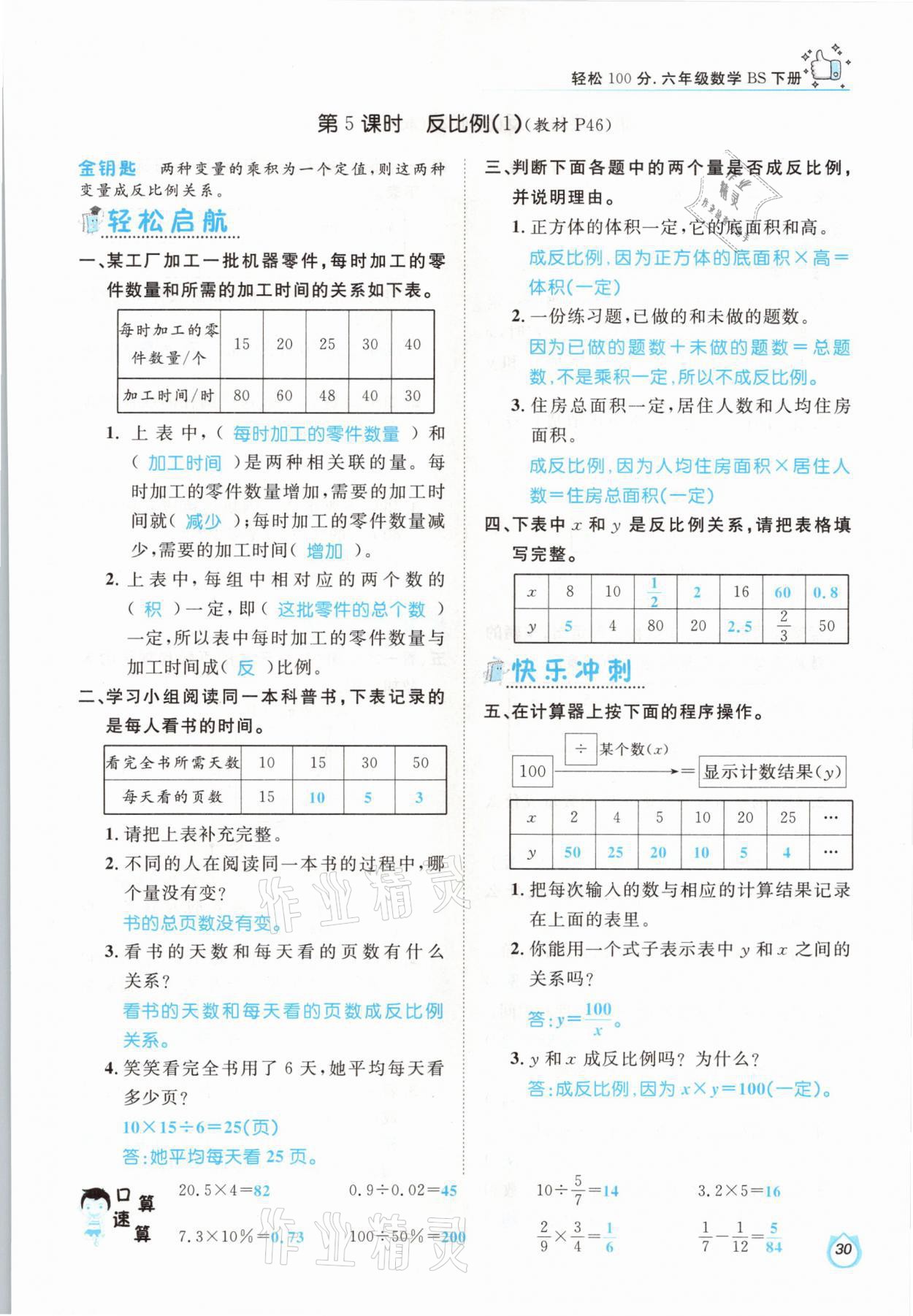 注:目前有些书本章节名称可能整理的还不是很完善,但都是按照顺序排列的,请同学们按照顺序仔细查找。练习册 2021年轻松学习100分六年级数学下册北师大版 答案主要是用来给同学们做完题方便对答案用的,请勿直接抄袭。