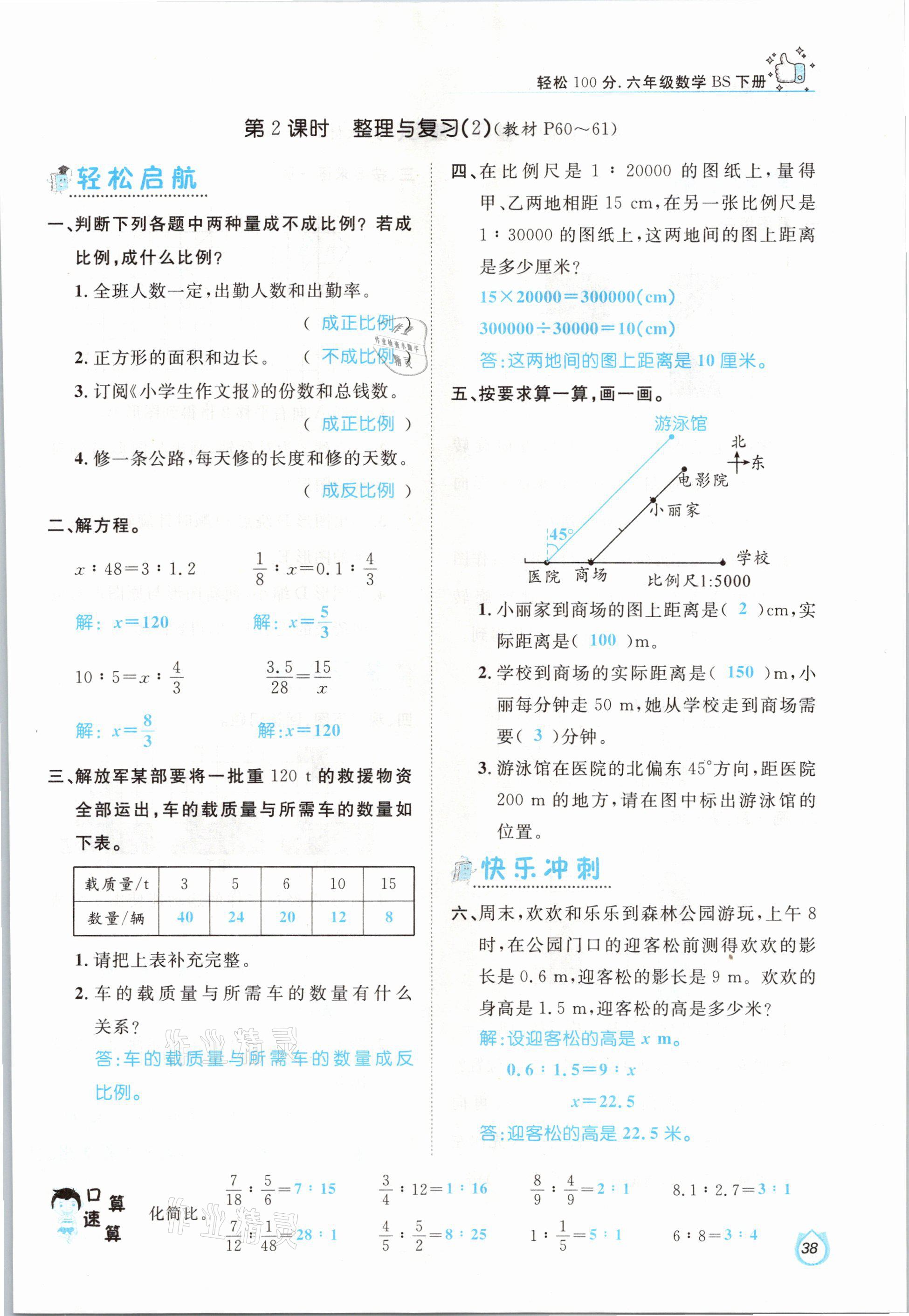 注:目前有些书本章节名称可能整理的还不是很完善,但都是按照顺序排列的,请同学们按照顺序仔细查找。练习册 2021年轻松学习100分六年级数学下册北师大版 答案主要是用来给同学们做完题方便对答案用的,请勿直接抄袭。