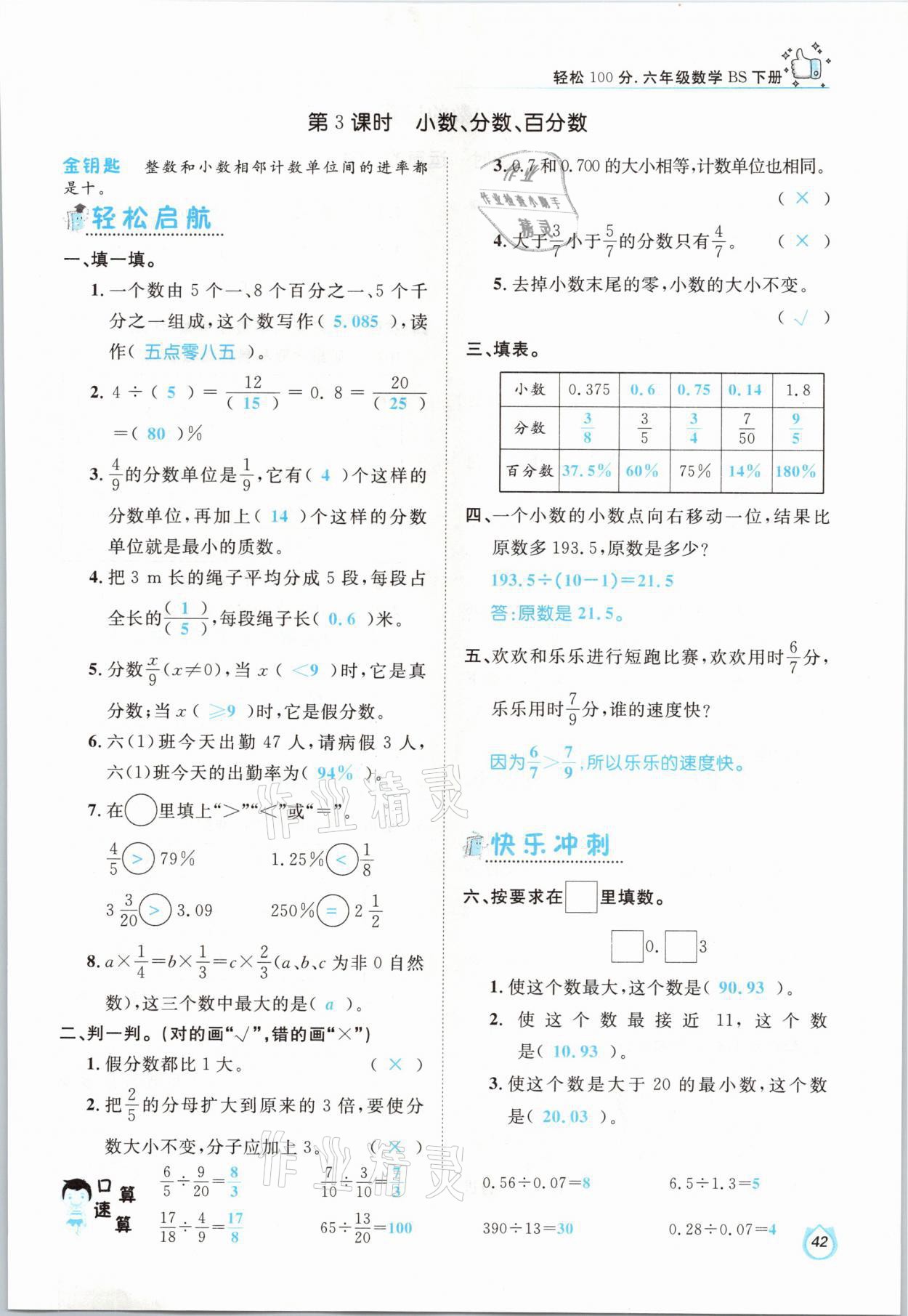 注:目前有些书本章节名称可能整理的还不是很完善,但都是按照顺序排列的,请同学们按照顺序仔细查找。练习册 2021年轻松学习100分六年级数学下册北师大版 答案主要是用来给同学们做完题方便对答案用的,请勿直接抄袭。