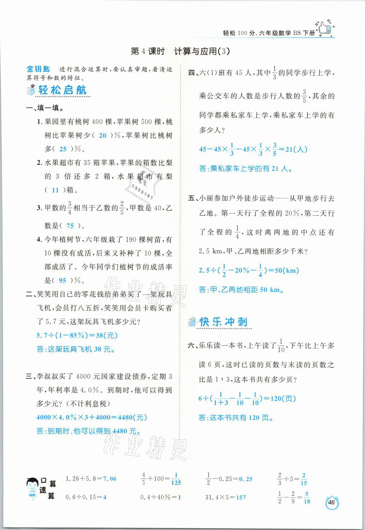 注:目前有些书本章节名称可能整理的还不是很完善,但都是按照顺序排列的,请同学们按照顺序仔细查找。练习册 2021年轻松学习100分六年级数学下册北师大版 答案主要是用来给同学们做完题方便对答案用的,请勿直接抄袭。