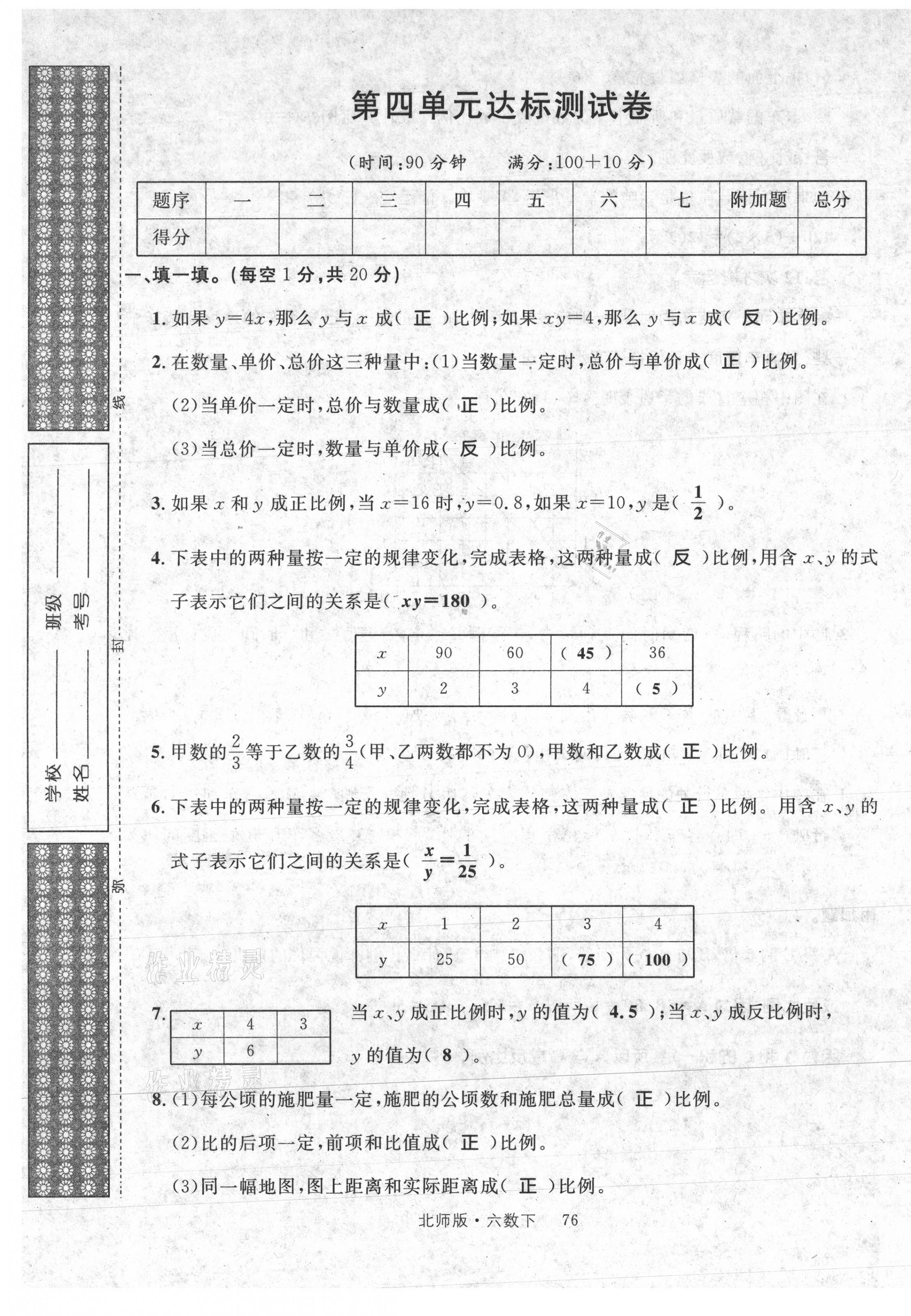 注:目前有些书本章节名称可能整理的还不是很完善,但都是按照顺序排列的,请同学们按照顺序仔细查找。练习册 2021年轻松学习100分六年级数学下册北师大版 答案主要是用来给同学们做完题方便对答案用的,请勿直接抄袭。