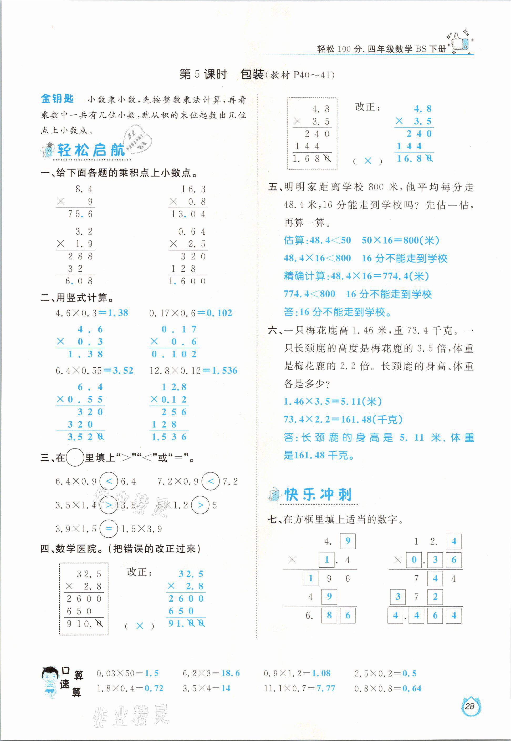 注:目前有些书本章节名称可能整理的还不是很完善,但都是按照顺序排列的,请同学们按照顺序仔细查找。练习册 2021年轻松学习100分四年级数学下册北师大版 答案主要是用来给同学们做完题方便对答案用的,请勿直接抄袭。