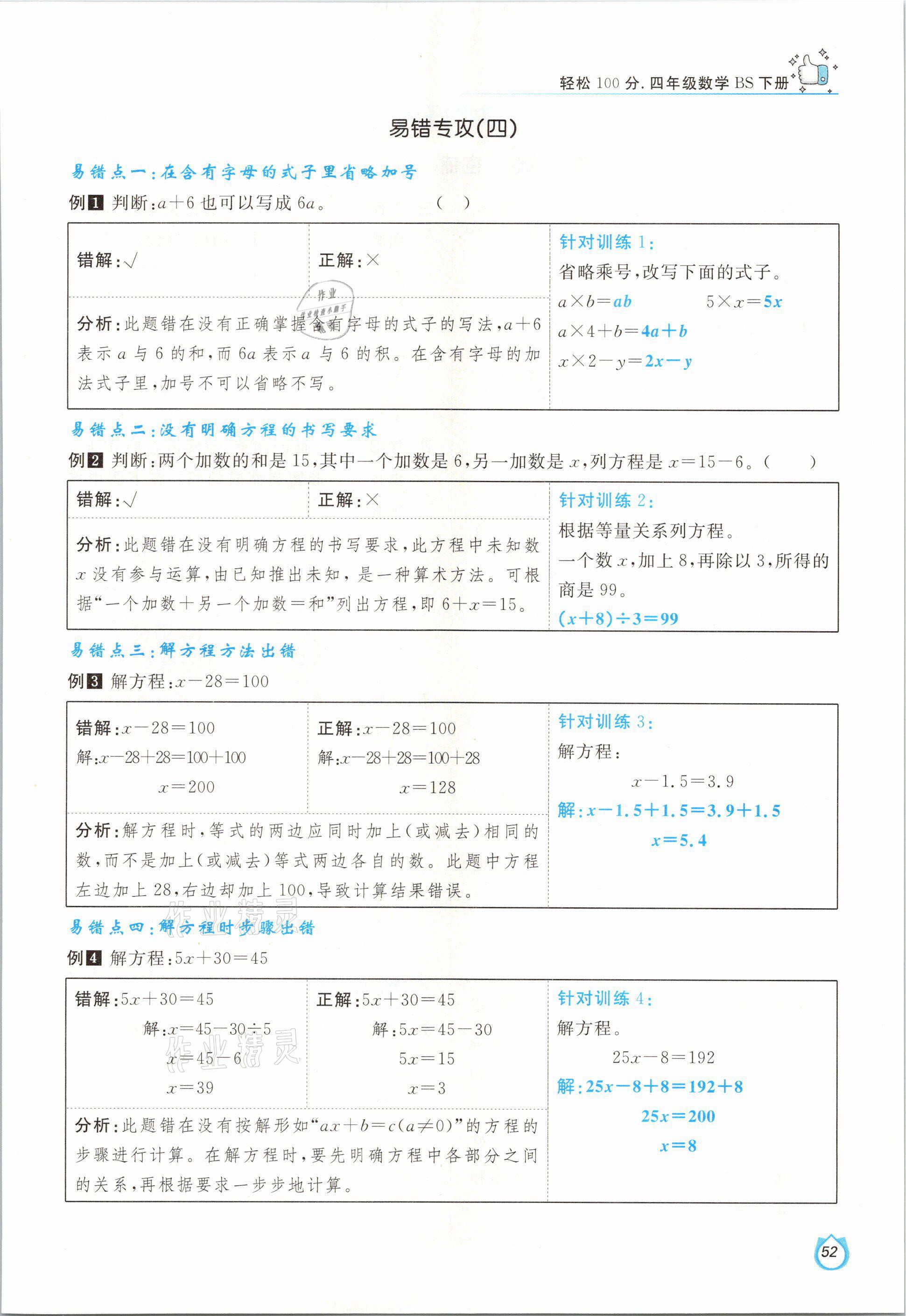 注:目前有些书本章节名称可能整理的还不是很完善,但都是按照顺序排列的,请同学们按照顺序仔细查找。练习册 2021年轻松学习100分四年级数学下册北师大版 答案主要是用来给同学们做完题方便对答案用的,请勿直接抄袭。