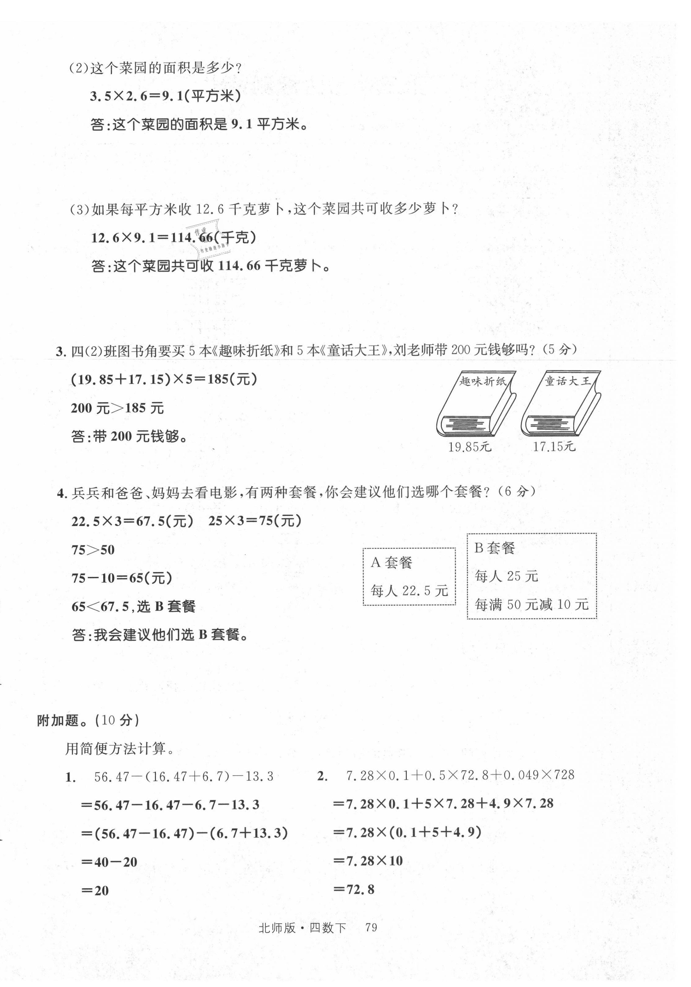 注:目前有些书本章节名称可能整理的还不是很完善,但都是按照顺序排列的,请同学们按照顺序仔细查找。练习册 2021年轻松学习100分四年级数学下册北师大版 答案主要是用来给同学们做完题方便对答案用的,请勿直接抄袭。